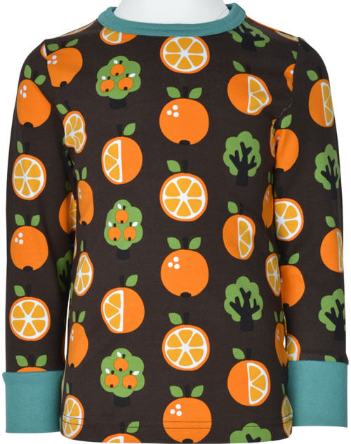 Schönes T-Shirt mit langen Ärmeln von MAXOMORRA mit tollem Orangen-Motiv. Der lockere Schnitt und das weiche Material sorgen für einen hohen Tragekomfort. Ab Größe 98/104 ohne Druckknöpfe am Halsausschnitt.