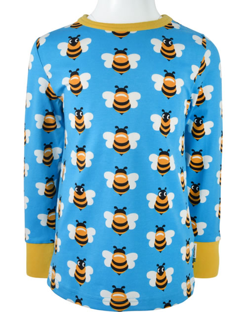 Maxomorra T-Shirt Langarm PICNIC BEE blau/gelb GOTS