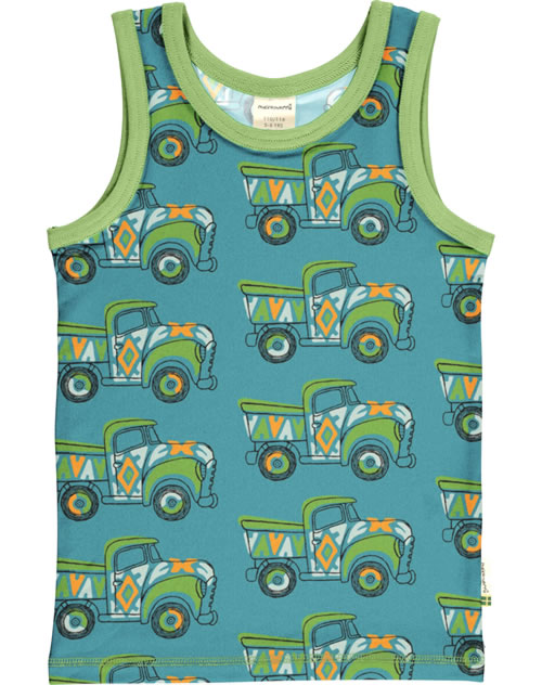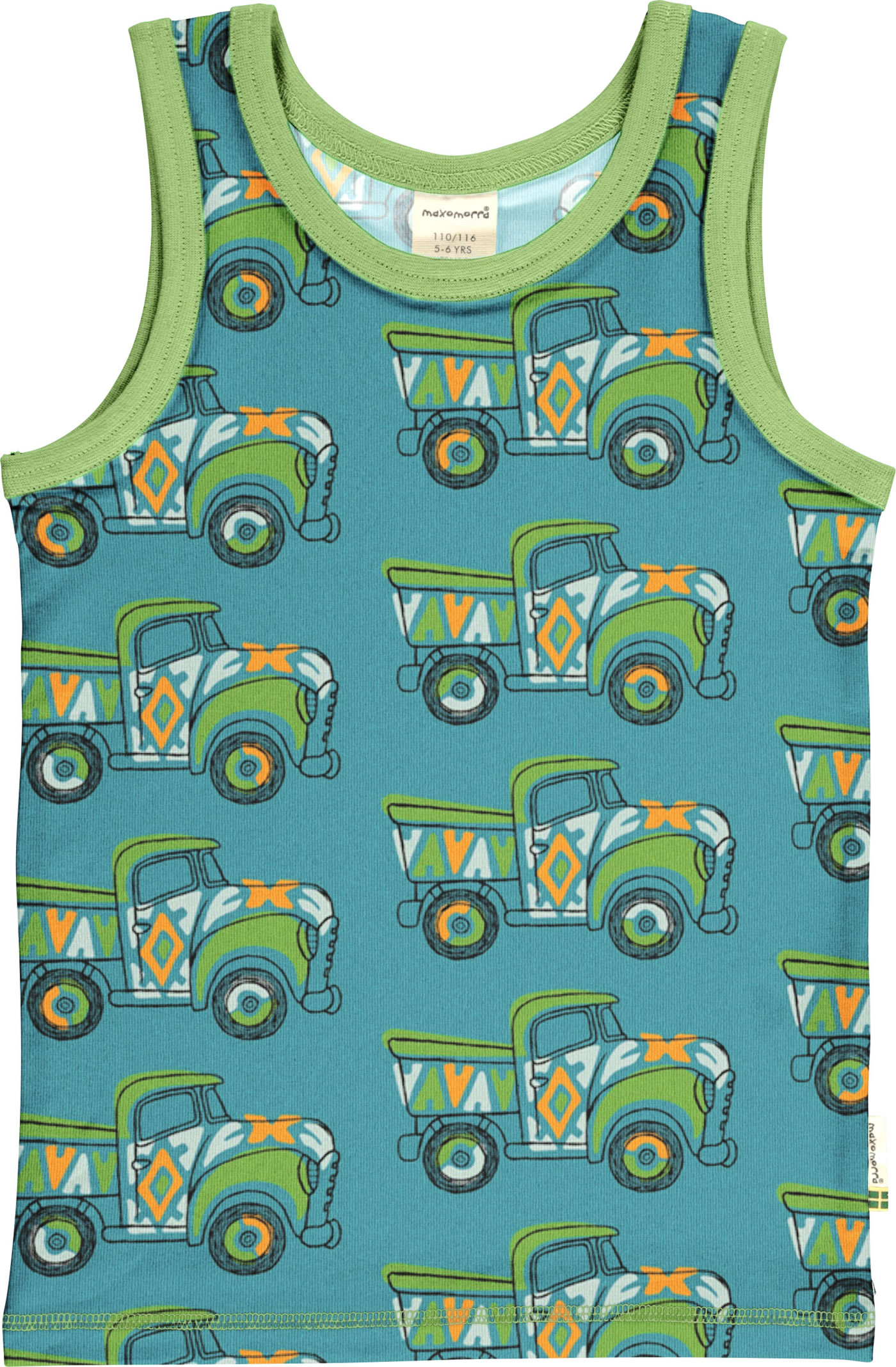 Maxomorra Tanktop Unterhemd BUNTER TRUCK grün/blau GOTS
