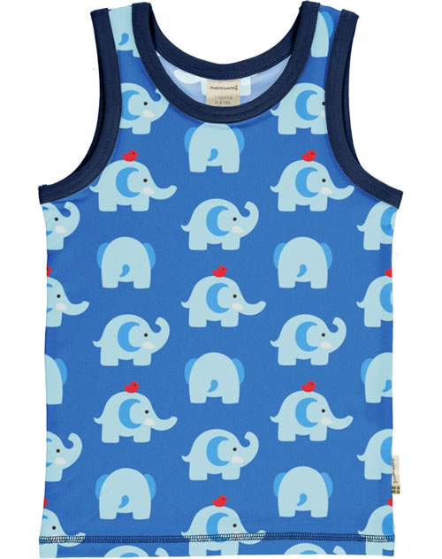 Maxomorra Tanktop Unterhemd ELEPHANT FRIENDS blau GOTS