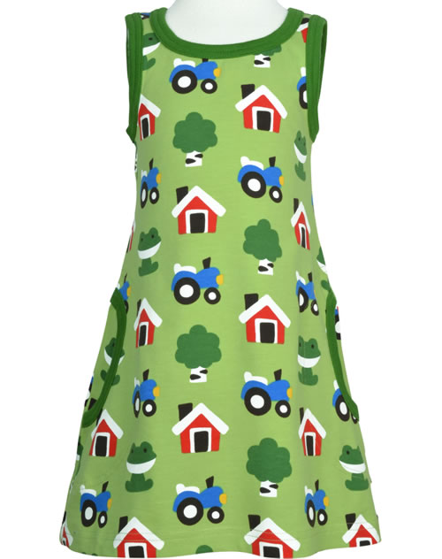 Maxomorra Träger-Kleid FOREST FARM grün GOTS