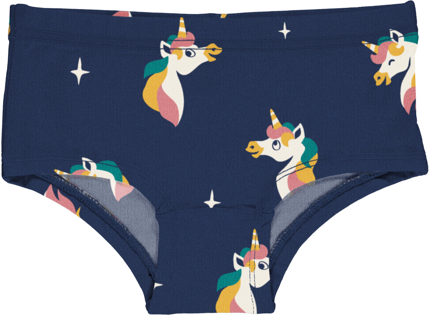Diesee schöne Unterhose von Maxomorra ist im Grundton Blau gehalten und entzückt mit vielen abgebildeten Einhörnern und Sternen. 🦄✨