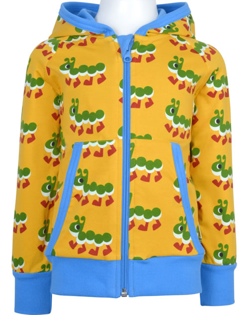 Wende-Sweatjacke mit Kapuze und tollen Raupen-Motiven von MAXOMORRA. Farbig abgesetzte Bündchen und Paspeln sorgen für einen absoluten Blickfang. Das doppellagige Material aus biologischer Baumwolle und der lockere Schnitt sorgen für einen hohen Tragekomfort. Der Hoodie kann je nach Lust und Laune mit der bunten Seite oder der unifarbenen Seite getragen werden.