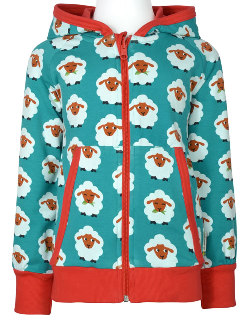 Maxomorra Wende-Sweatjacke m. Kapuze FARM SHEEP blau/rot