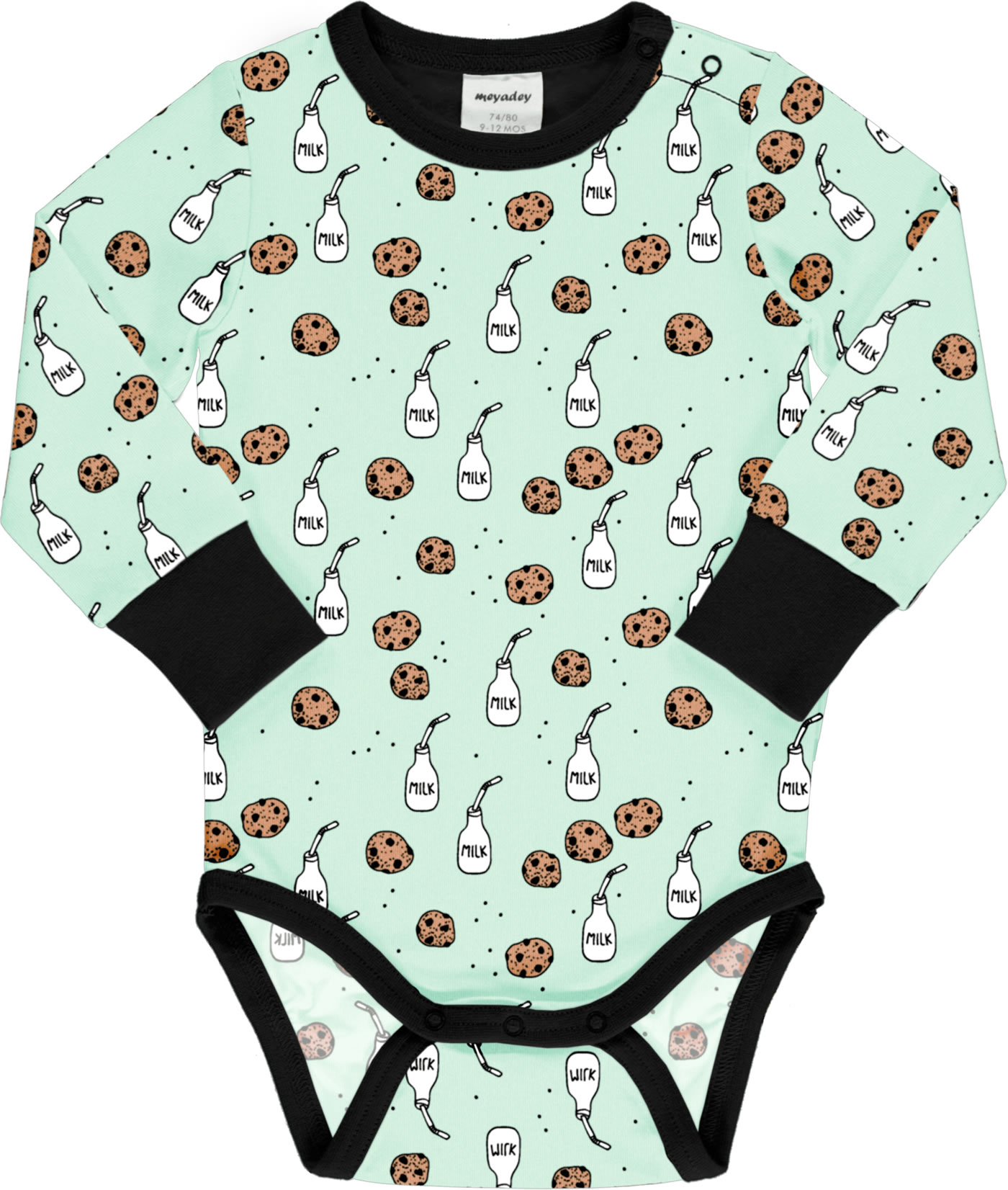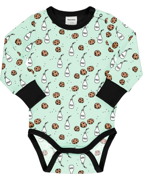 Meyadey Baby-Body Langarm MILK & COOKIES blau
