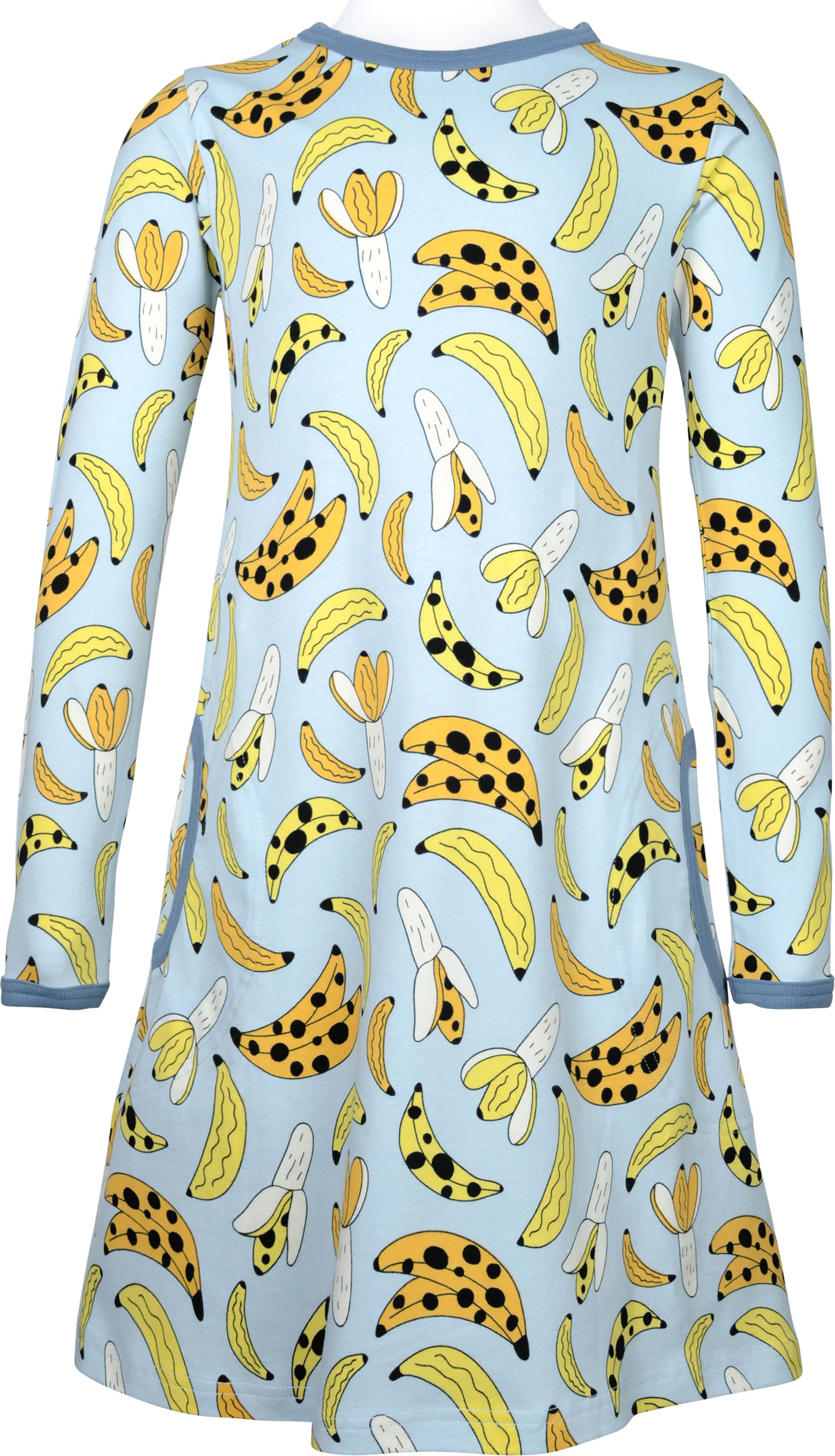 Langarm-Kleid mit tollem Bananen-Muster von MEYADEY. Die bunten Farben und das peppige Design machen dieses hübsche Kleid zu einem tollen Blickfang. Das weiche Material sorgt für einen angenehmen Tragekomfort. Abgerundete, aufgesetzte Taschen auf der Vorderseite bieten Platz für Kleinigkeiten.