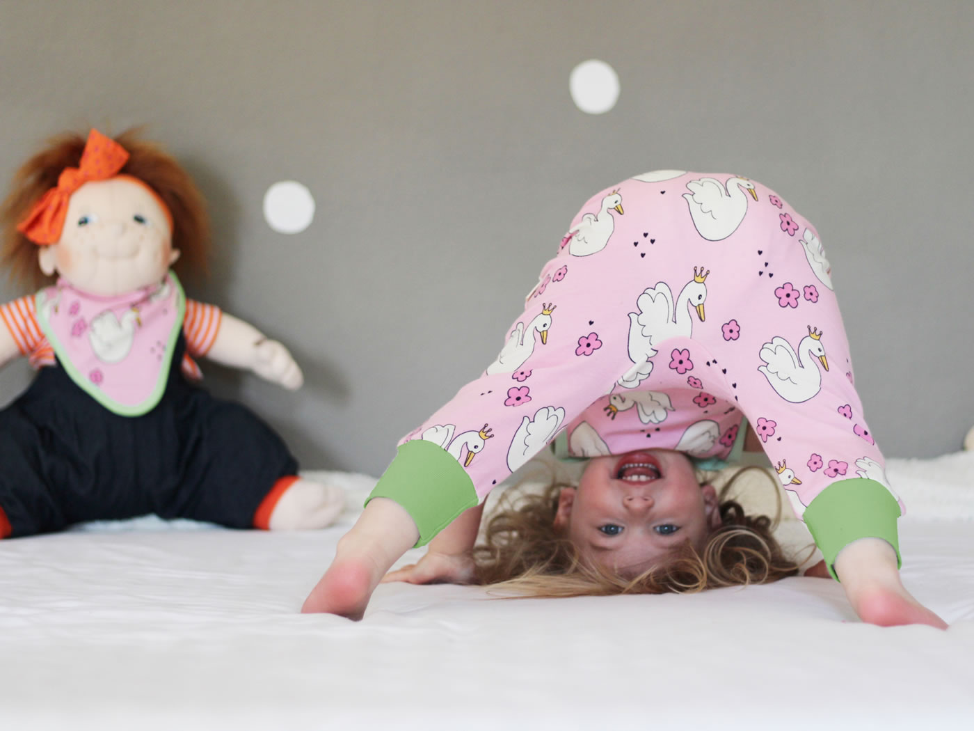 Toller Spieler mit mädchenhaften Schwanen-Motiven von MEYADEY. Die Knöpfe an den Trägern machen das An- und Ausziehen zu einem Kinderspiel. Das weiche Material bietet einen hohen Tragekomfort.