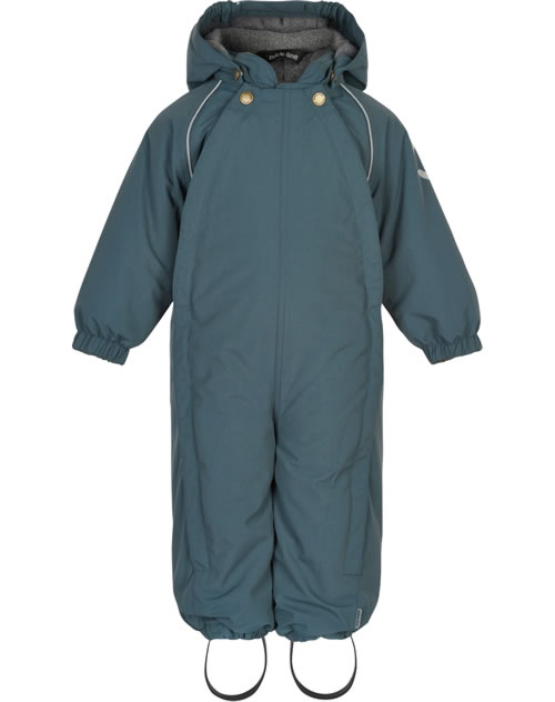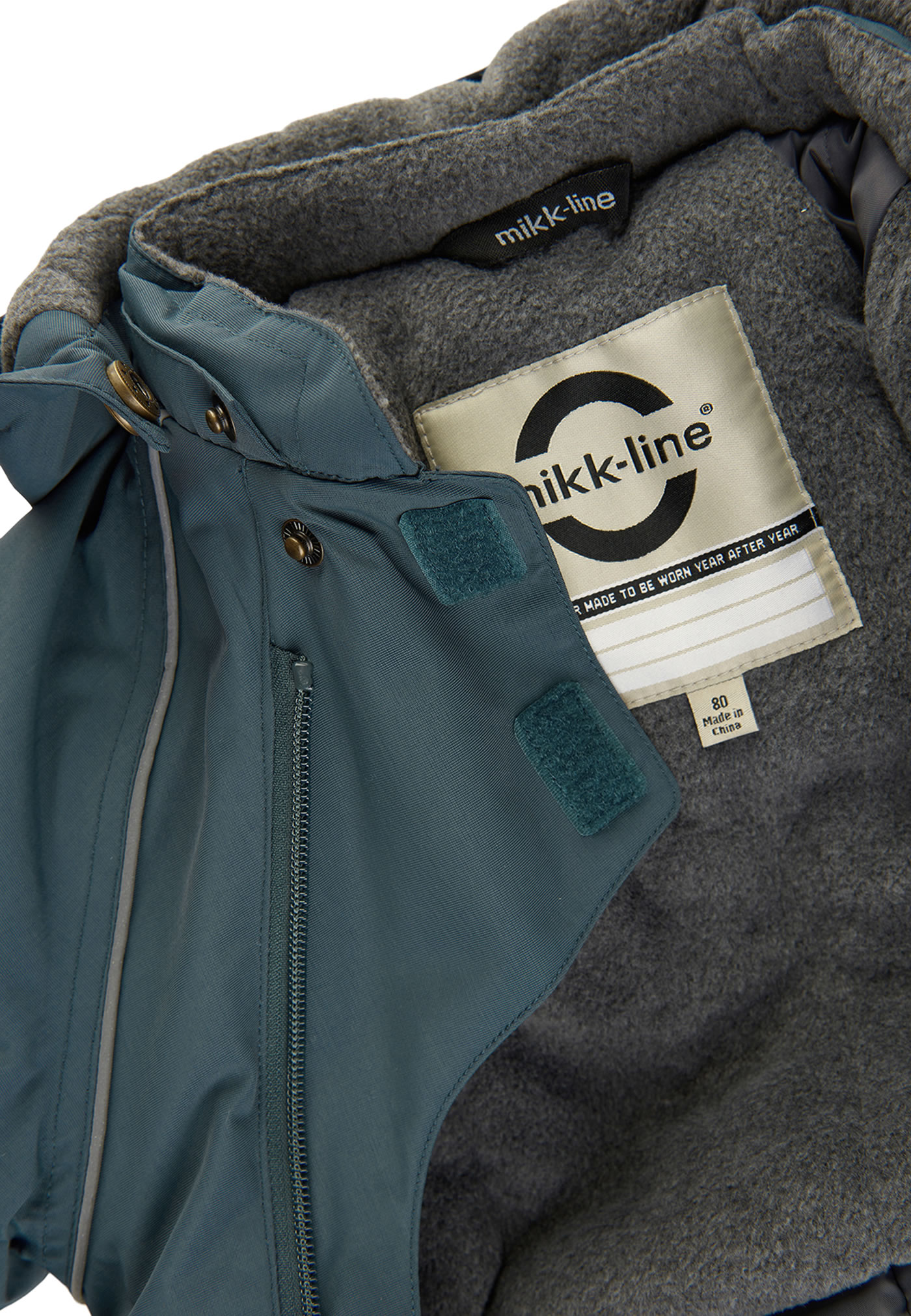 Warm gefütterter Baby-Winteroverall von MIKK-LINE mit abnehmbarer Kapuze und reflektierenden Details.