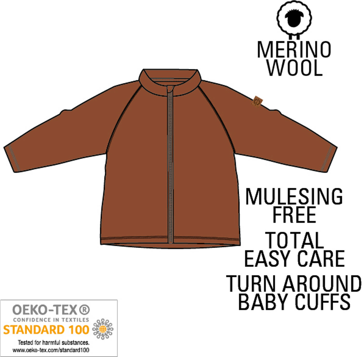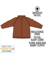 Diese warme Babyjacke aus Merinowolle von MIKK-LINE ist superweich und kratzt nicht. Die Fasern der verwendeten Merinowolle sind dünner als bei anderen Wollsorten und somit besonders weich auf Babys Haut. Die Wolljacke ist OEKO-TEX zertifiziert und das bedeutet dass bei der Herstellung der Kleidung keine schädlichen Chemikalien verwendet wurden. Ein besonderes Detail sind die Ärmelbündchen die sich umstülpen lassen und so an besonders kalten Tagen die Handschuhe ersetzen oder als Kratz-Schutz für Fingernägel dienen.