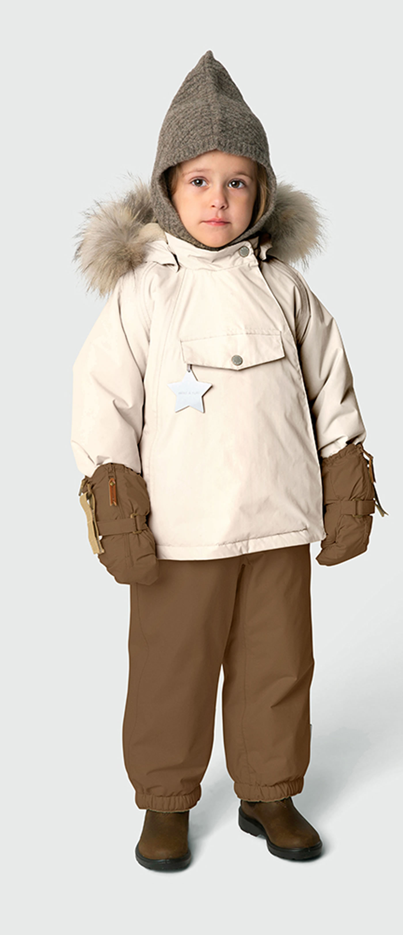 Warm gefütterte und wasserdichte Handschuhe von MINI A TURE. Die Handschuhe sind mit weichem Fleece gefüttert und zum größten Teil aus recycelten Materialien. An der Seite ist ein reflektierendes Logo und ein Reißverschluss auf dem Handrücken ermöglicht ein einfaches An- und Ausziehen. Die Handschuhe können dank der Bänder mit Klettstreifen an den Jacken von MINI A TURE befestigt werden.