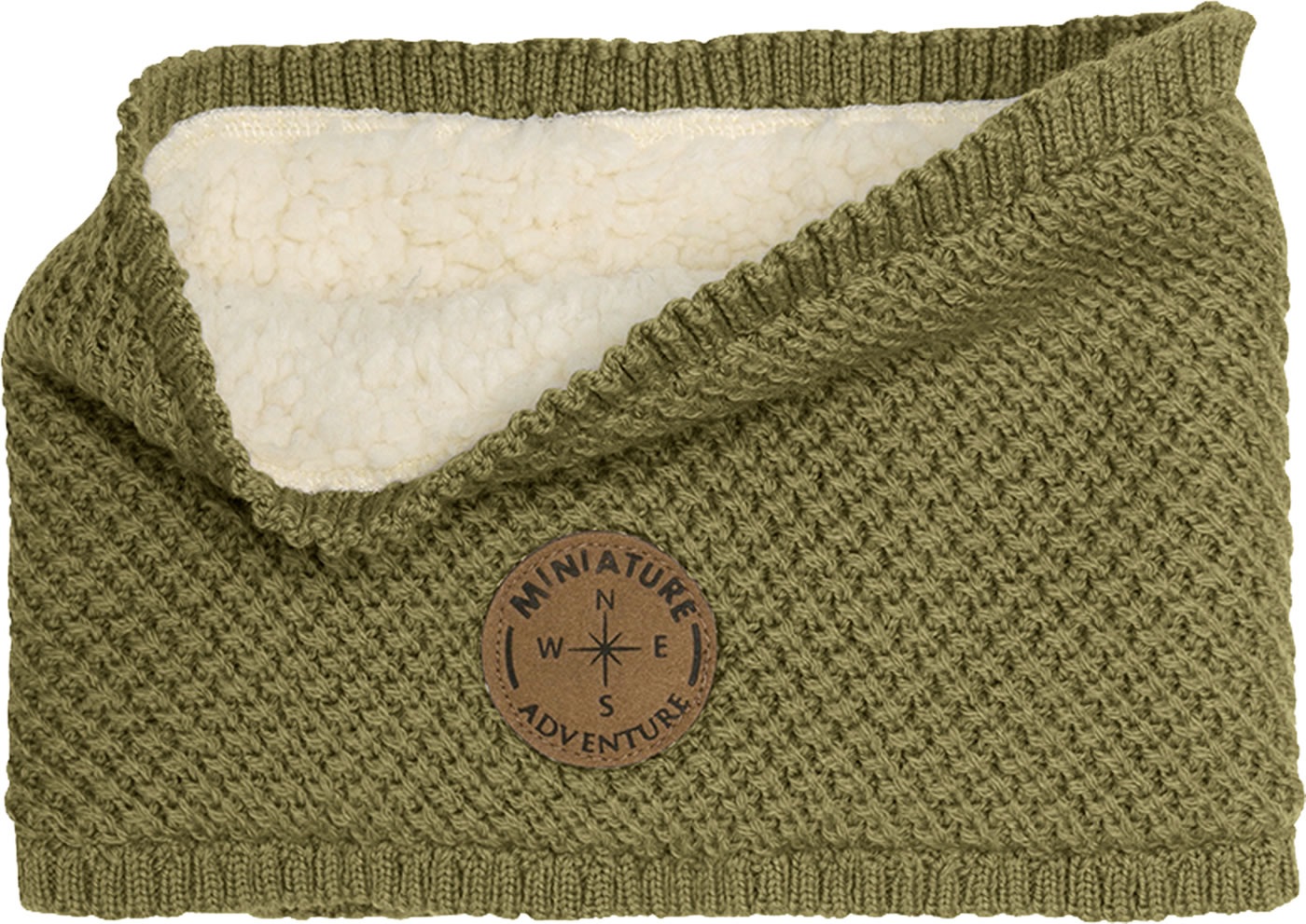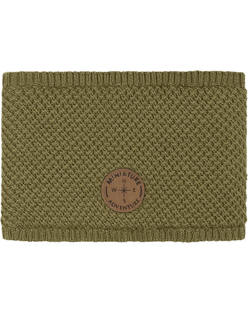 Gestrickter Schlauch-Schal GOI aus Merinowolle von MINI A TURE. Auf der Vorderseite befindet sich ein MINI A TURE Logo-Patch. Gefüttert ist der warme Loop mit wechem Teddyplüsch.