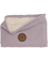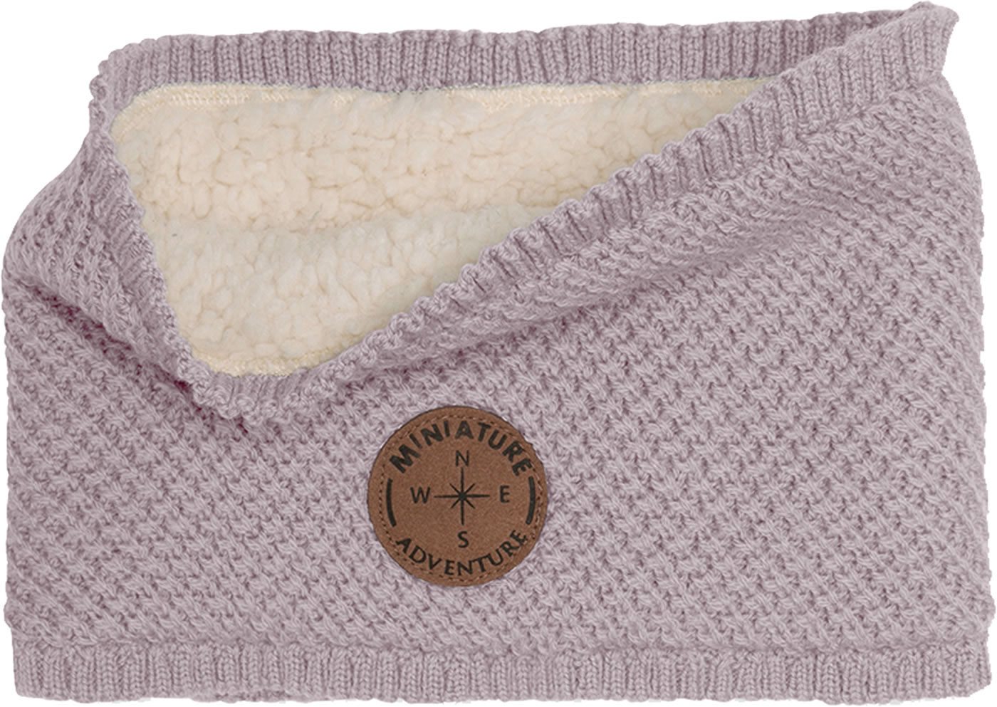Gestrickter Schlauch-Schal GOI aus Merinowolle von MINI A TURE. Auf der Vorderseite befindet sich ein MINI A TURE Logo-Patch. Gefüttert ist der warme Loop mit wechem Teddyplüsch.