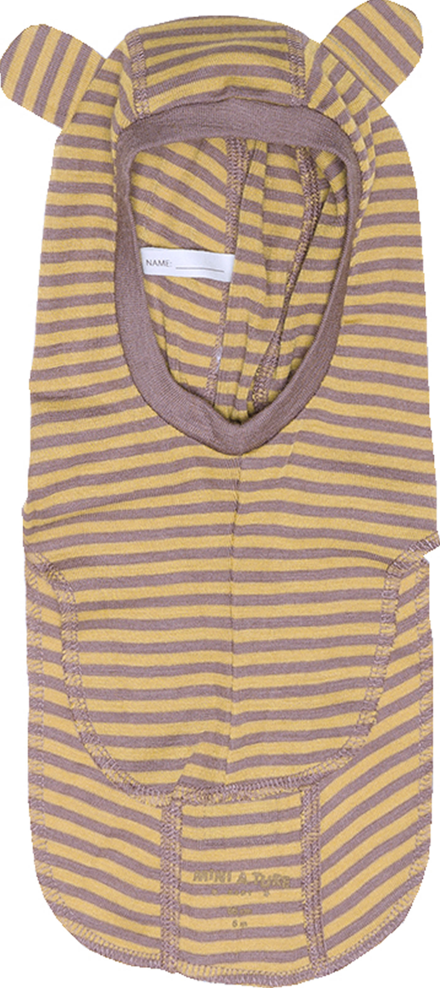 Die Schlupfmütze mit Kragen von MINI A TURE im lustigen Streifendesign ist ganz besonders bezaubernd durch die zwei kleinen Öhrchen. Das weiche Material aus Wolle und Bambus hat temperaturregulierende Eigenschaften und ist sehr anschmiegsam.