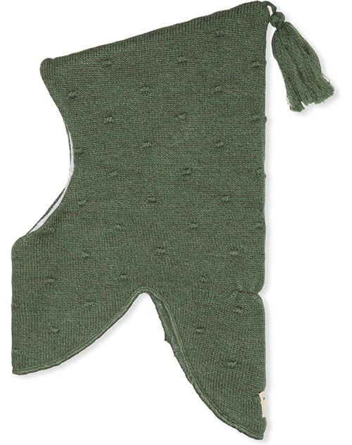 Schöne Schlupfmütze aus Merino Wolle im Knoten-Strick von MINI A TURE für Mädchen und Jungen. Von innen ist die Zipfelmütze mit der lustigen Quaste weich gefüttert und hält Wind und Kälte vom Kinderkopf ab. Extra lang am Hals geschnitten ersetzt die weiche Mütze sogar einen Schal. Auf der Rückseite befindet sich ein MINI A TURE Logo-Patch.