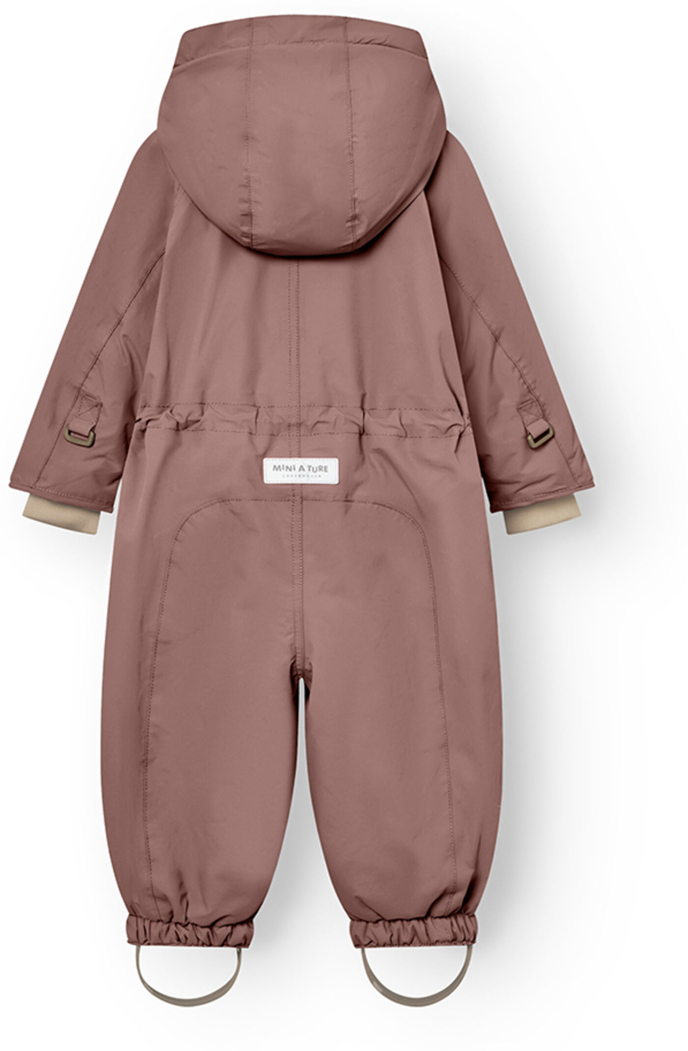 Wind- und wasserdicht ist der Schneeanzug MATWISTI von MINI A TURE. Softbündchen in den Ärmelenden sorgen mit einem Daumenloch dafür, dass alles da bleibt wo es hingehört. Zwei lange Reißverschlüsse sorgen für ein einfaches An- und Ausziehen. Im Rumpfbereich sowie auch in der abnehmbaren Kapuze ist der Overall mit einem weichen Fleecematerial versehen. So hält er den Nachwuchs im Winter schön warm. Gummistege in den Beinenden des Ski-Anzugs verhindern ein Hochrutschen der Hosenbeine und sind zudem noch rutschhemmend unter dem Schuhwerk. Reflektierende Details sorgen für eine gute Sichtbarkeit in der dunklen Jahreszeit. Eine kleine Tasche mit Druckknopf bietet Platz für Kleinigkeiten.