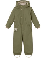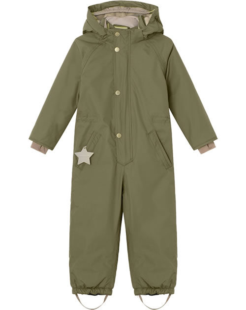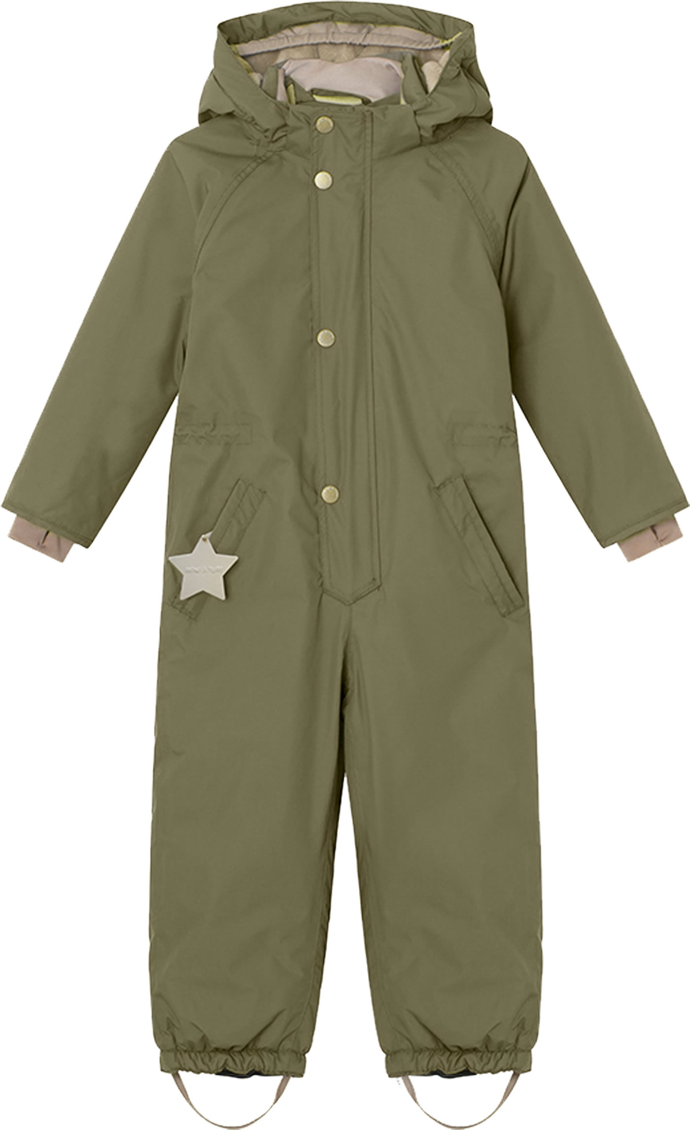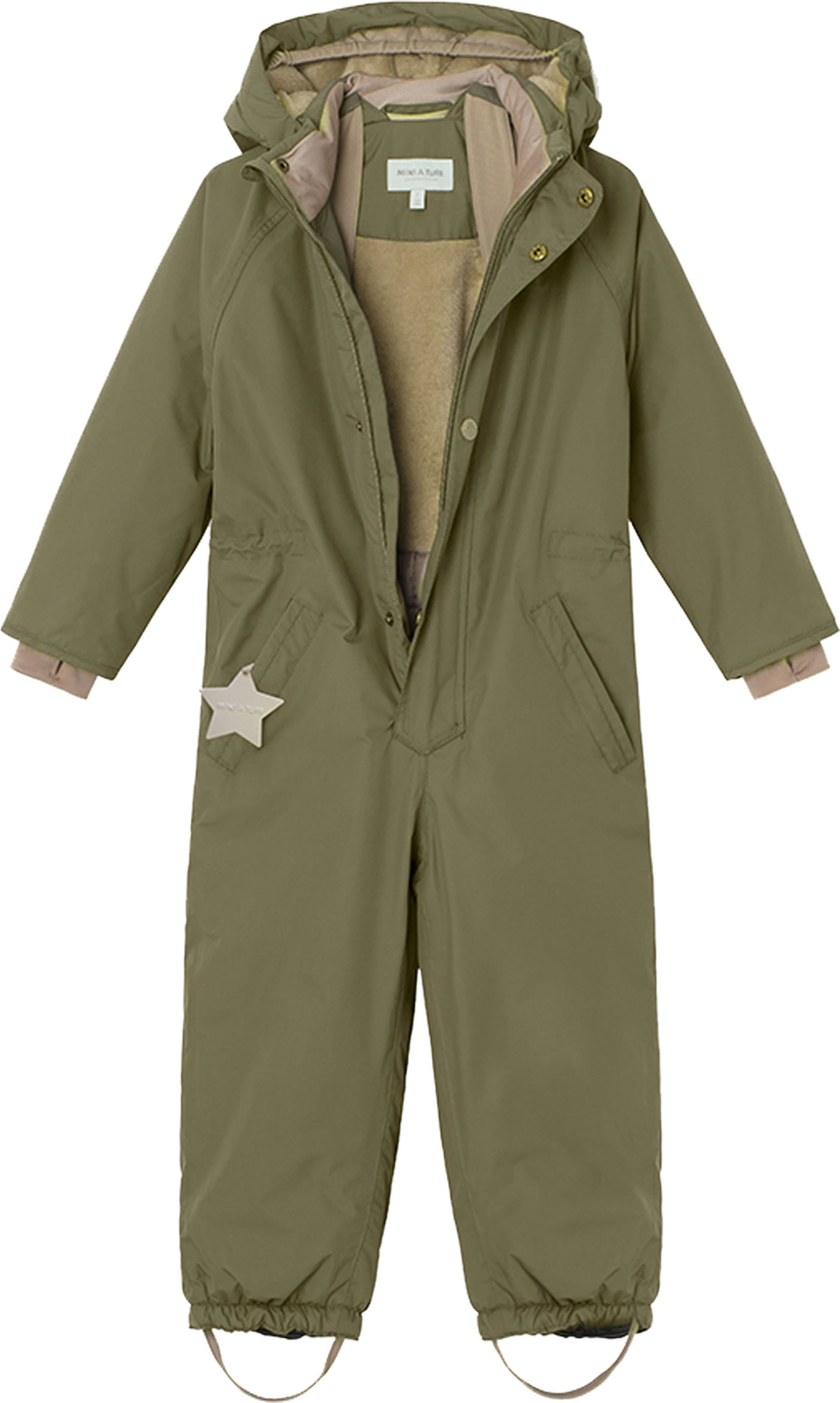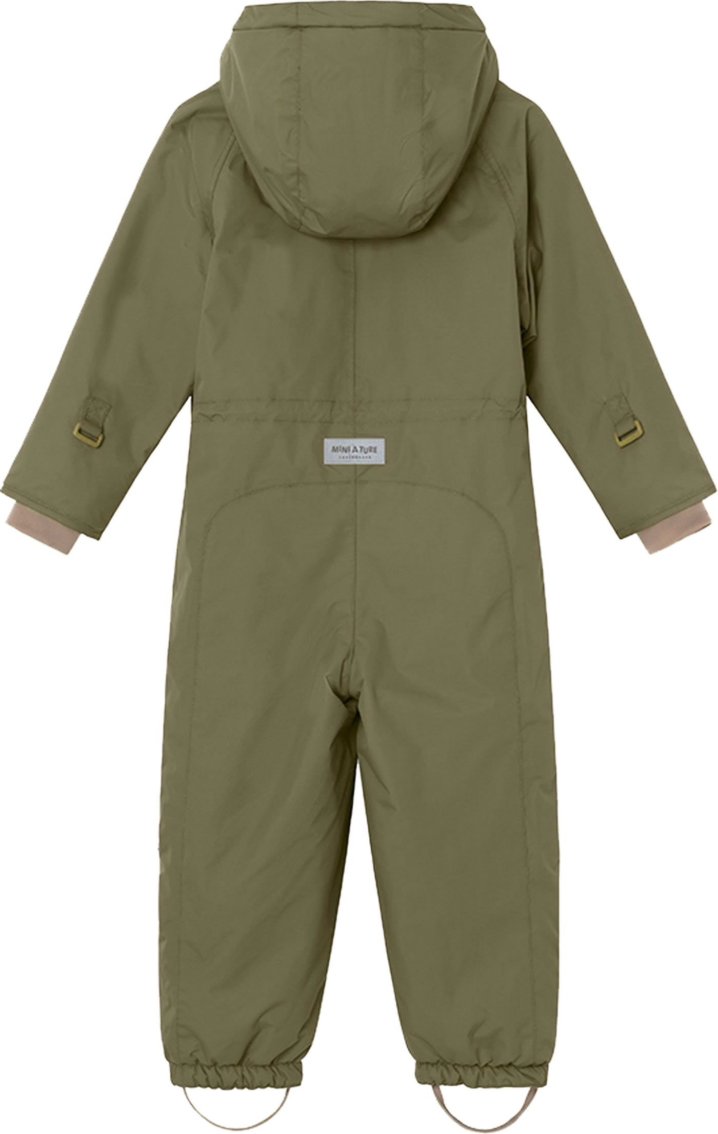 Wind- und wasserdicht ist der Schneeanzug WANNI von MINI A TURE. Stoftbündchen an den Ärmelenden sorgen mit einem Daumenloch dafür, dass alles da bleibt wo es hingehört. Ein langer Reißverschluss mit zusätzlicher Druckknopfleiste sorgt für ein einfaches An- und Ausziehen. Im Rumpfbereich sowie auch in der abnehmbaren Kapuze ist der Overall mit einem weichen Fleecematerial versehen. So hält er den Nachwuchs im Winter schön warm. Abnehmbare Gummistege in den Beinenden des Ski-Anzugs verhindern ein Hochrutschen der Hosenbeine und sind zudem noch rutschhemmend unter dem Schuhwerk. Reflektierende Details sorgen für eine gute Sichtbarkeit in der dunklen Jahreszeit. Kleine Taschen mit Druckknöpfen und Reißverschluss bieten Platz für Kleinigkeiten.