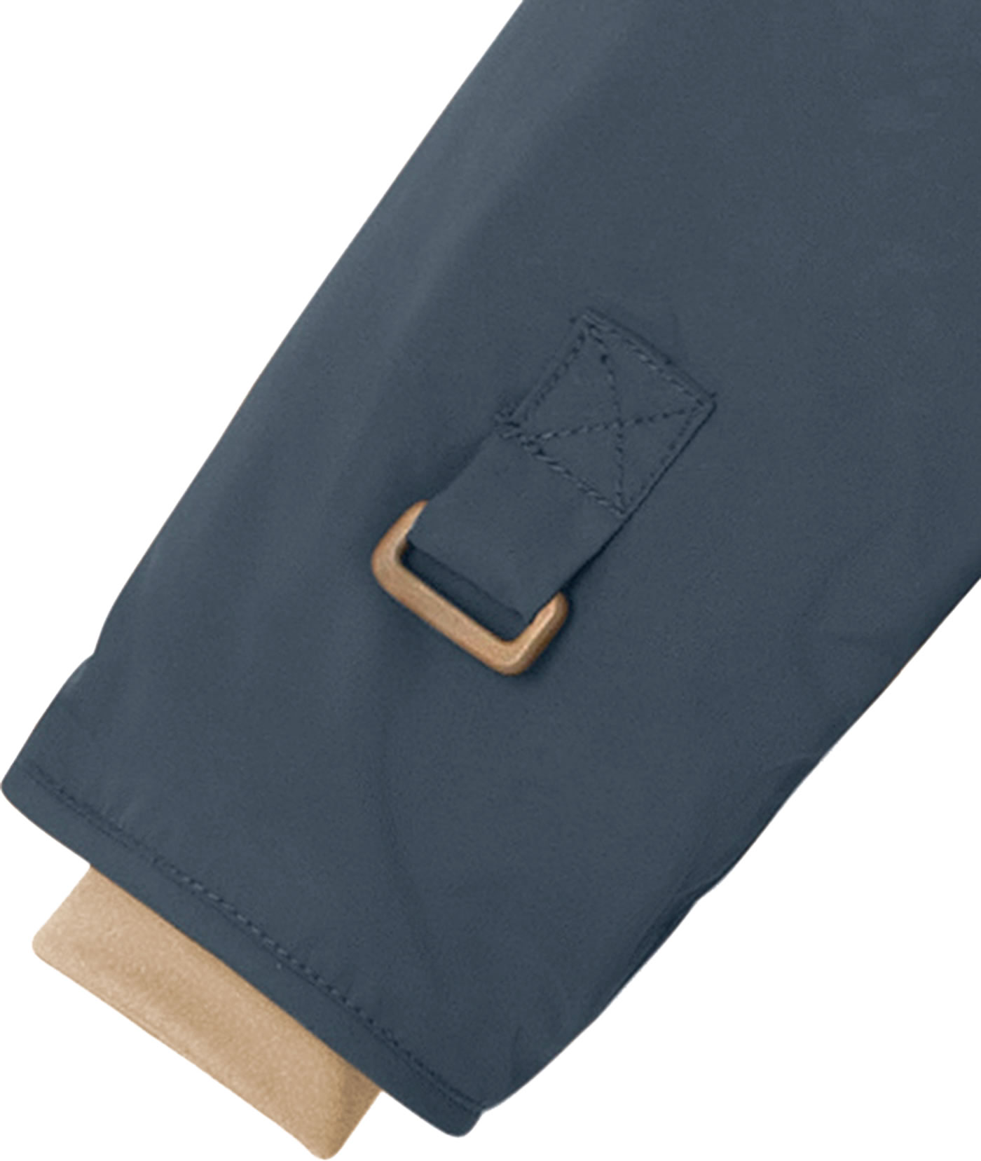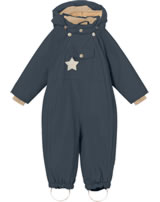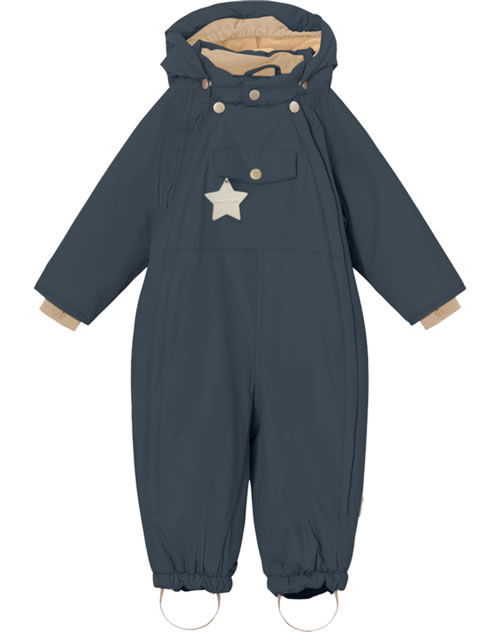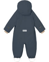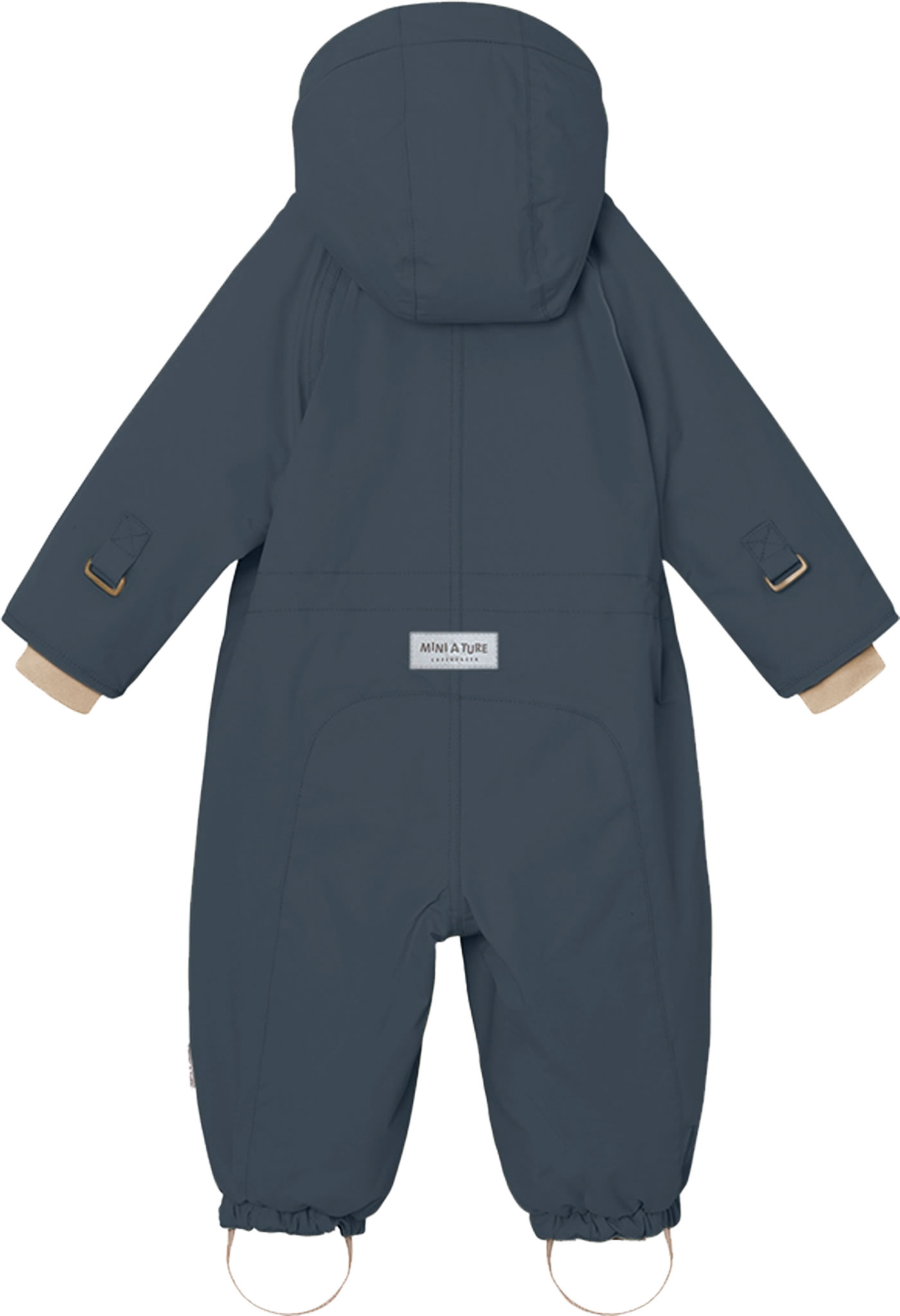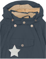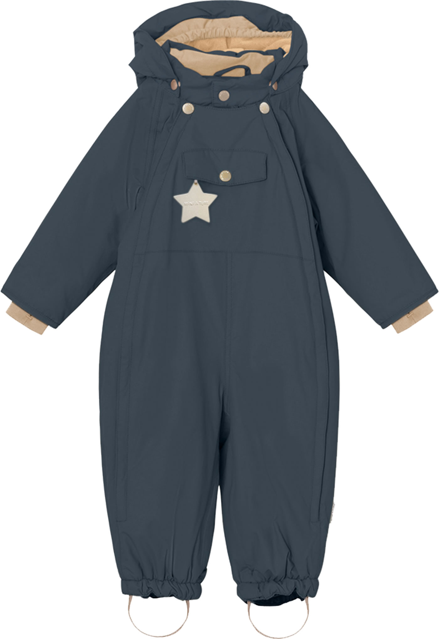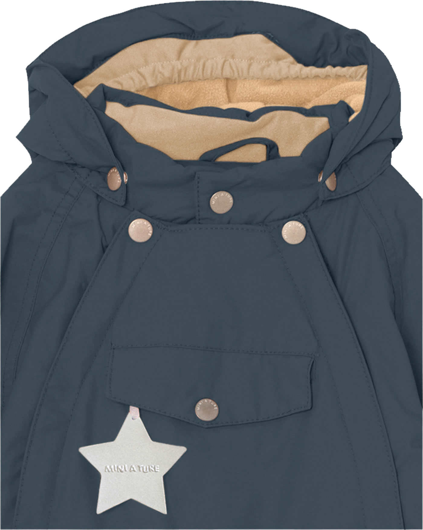 Wind- und wasserdicht ist der Schneeanzug WISTI von MINI A TURE. Softbündchen in den Ärmelenden sorgen mit einem Daumenloch dafür, dass alles da bleibt wo es hingehört. Zwei lange Reißverschlüsse sorgen für ein einfaches An- und Ausziehen. Im Rumpfbereich sowie auch in der abnehmbaren Kapuze ist der Overall mit einem weichen Fleecematerial versehen. So hält er den Nachwuchs im Winter schön warm. Gummistege in den Beinenden des Ski-Anzugs verhindern ein Hochrutschen der Hosenbeine und sind zudem noch rutschhemmend unter dem Schuhwerk. Reflektierende Details sorgen für eine gute Sichtbarkeit in der dunklen Jahreszeit. Eine kleine Tasche mit Druckknopf bietet Platz für Kleinigkeiten.