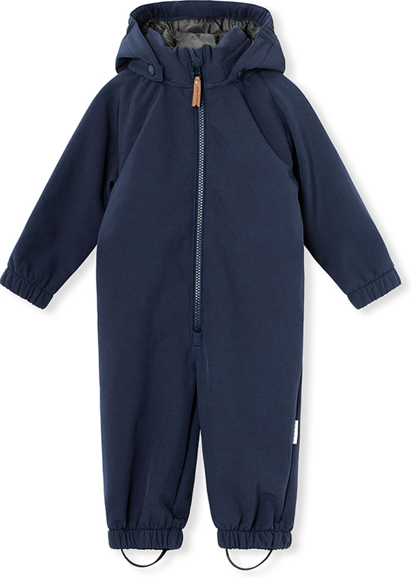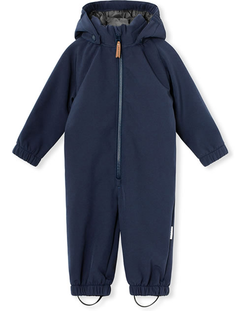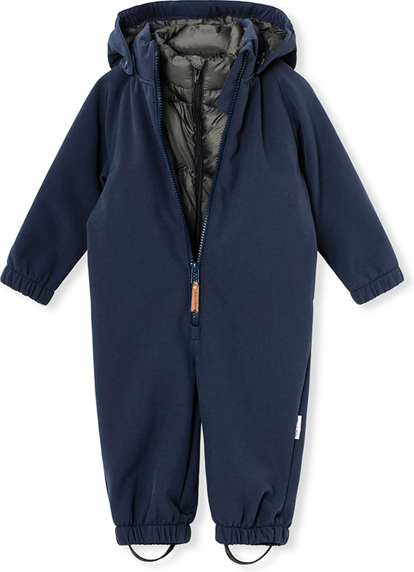 Wind- und wasserdicht ist der Softshellanzug ARNOvon MINI A TURE für Kinder. Der besondere Clou: eine herausknöpfbare Weste, die sich auch solo tragen lässt. Der atmungsaktive Overall lässt sich also an nicht so kalten Tagen ohne Weste und in der besonders kalten Jahreszeit warm gefüttert mit eingeknöpfter Weste tragen. Gummibündchen an den Ärmelenden sorgen dafür, dass alles da bleibt wo es hingehört. Ein langer Reißverschluss auf der Vorderseite sorgt für ein einfaches An- und Ausziehen. Im Rumpfbereich sowie auch in der abnehmbaren Kapuze ist der Overall mit einem weichen Fleecematerial versehen. So hält er den Nachwuchs im Winter schön warm. Gummistege in den Beinenden des Softshellanzugs verhindern ein Hochrutschen der Hosenbeine und sind zudem noch rutschhemmend unter dem Schuhwerk. Warm gefüttert ist auch die abknöpfbare Kapuze. Reflektierende Details sorgen für eine gute Sichtbarkeit in der dunklen Jahreszeit.