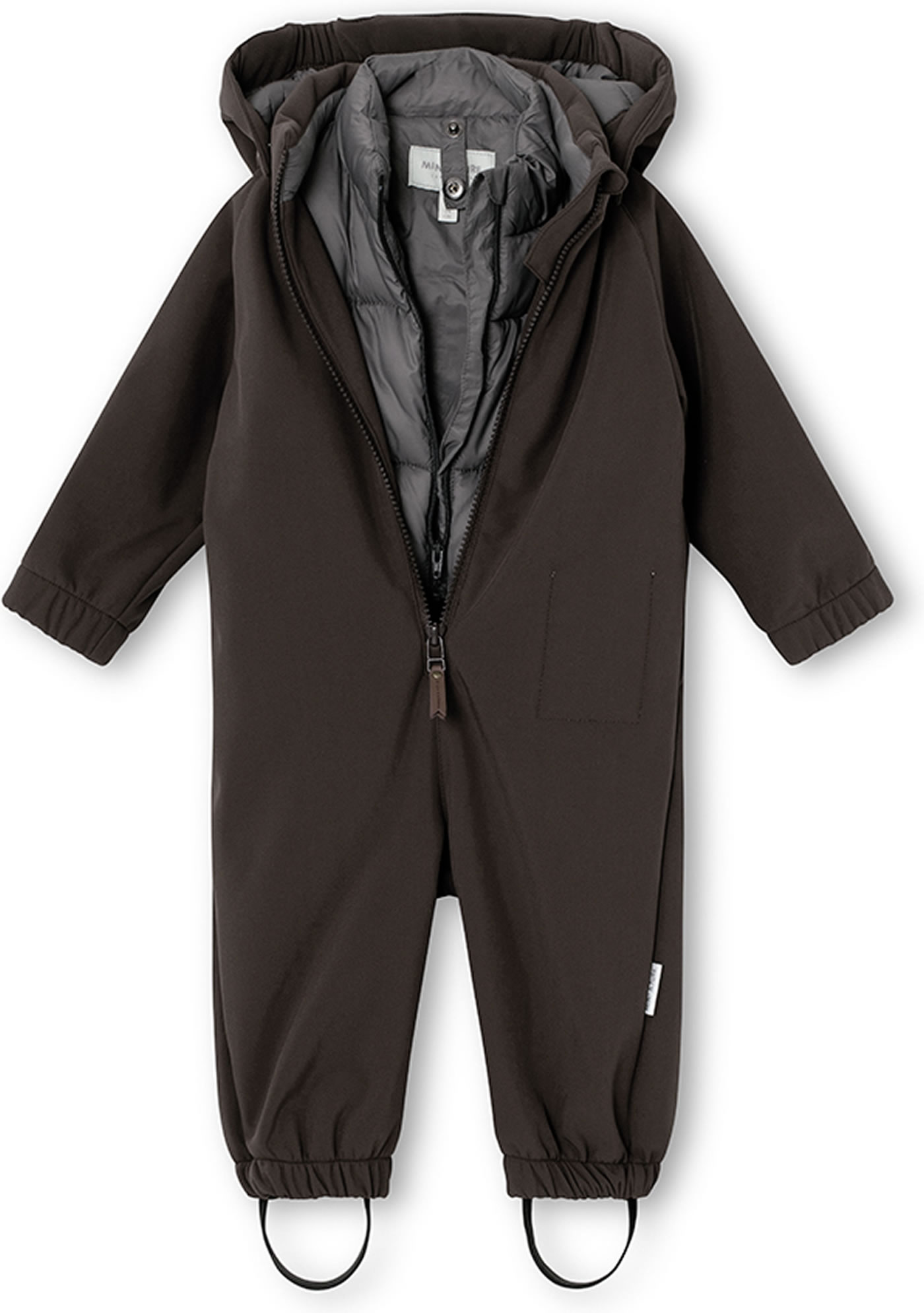 Wind- und wasserdicht ist der Softshellanzug ARNOvon MINI A TURE für Kinder. Der besondere Clou: eine herausknöpfbare Weste, die sich auch solo tragen lässt. Der atmungsaktive Overall lässt sich also an nicht so kalten Tagen ohne Weste und in der besonders kalten Jahreszeit warm gefüttert mit eingeknöpfter Weste tragen. Gummibündchen an den Ärmelenden sorgen dafür, dass alles da bleibt wo es hingehört. Ein langer Reißverschluss auf der Vorderseite sorgt für ein einfaches An- und Ausziehen. Im Rumpfbereich sowie auch in der abnehmbaren Kapuze ist der Overall mit einem weichen Fleecematerial versehen. So hält er den Nachwuchs im Winter schön warm. Gummistege in den Beinenden des Softshellanzugs verhindern ein Hochrutschen der Hosenbeine und sind zudem noch rutschhemmend unter dem Schuhwerk. Warm gefüttert ist auch die abknöpfbare Kapuze. Reflektierende Details sorgen für eine gute Sichtbarkeit in der dunklen Jahreszeit.