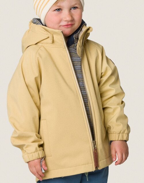 Diese tolle Softshelljacke mit weichem Fleece-Futter ADEN von MINI A TURE ist ein toller Begleiter für die Übergangszeit. Dank ihres federleichten Gewichts ist die Softshelljacke angenehm zu tragen. Für einen optimalen Sitz sorgt ein Gummizug in der Taille, der sich raffen lässt. Von außen schützt wasserfestes und winddichtes Material vor Nässe und Wind. Weich gefüttert ist die abknöpfbare Kapuze mit Gummibündchen und reflektierende Details an der Jacke sorgen für eine gute Sichtbarkeit wenn man im Dunkeln unterwegs ist. In die Einsteck-Taschen lassen sich prima Kleinigkeiten aufbewahren. Der gerade Schnitt und die schöne Farbe machen ADEN zu einem zauberhaften Blickfang