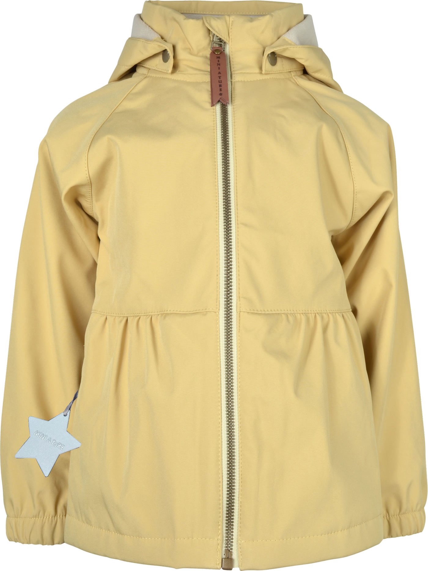 Diese mädchenhafte Softshelljacke mit weichem Fleece-Futter BRIDDI von MINI A TURE ist ein toller Begleiter für die Übergangszeit. Dank ihres federleichten Gewichts ist die Softshelljacke angenehm zu tragen. Von außen schützt wasserfestes und winddichtes Material vor Nässe und Wind. Weich gefüttert ist die abknöpfbare Kapuze mit Gummibündchen und reflektierende Details an der Jacke sorgen für eine gute Sichtbarkeit wenn man im Dunkeln unterwegs ist. In die Einsteck-Taschen lassen sich prima Kleinigkeiten aufbewahren. Der taillierte Schnitt und die frühlingshafte Farbe machen BRIDDI zu einem zauberhaften Blickfang