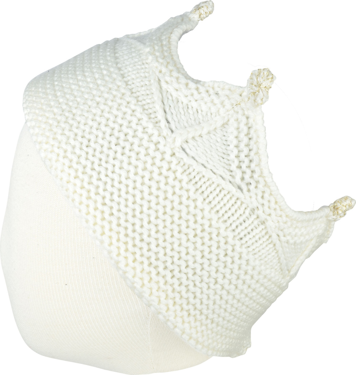 Schönes Krönchen-Stirnband in Strickoptik aus warmer Merinowolle und mit kuscheligem Fleece gefüttert von MINI A TURE. Ein schönes Detail sind de gold glitzernden Zacken der Krone.