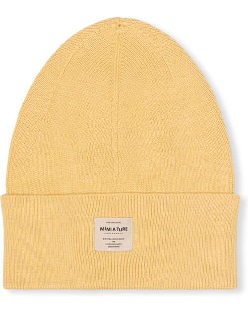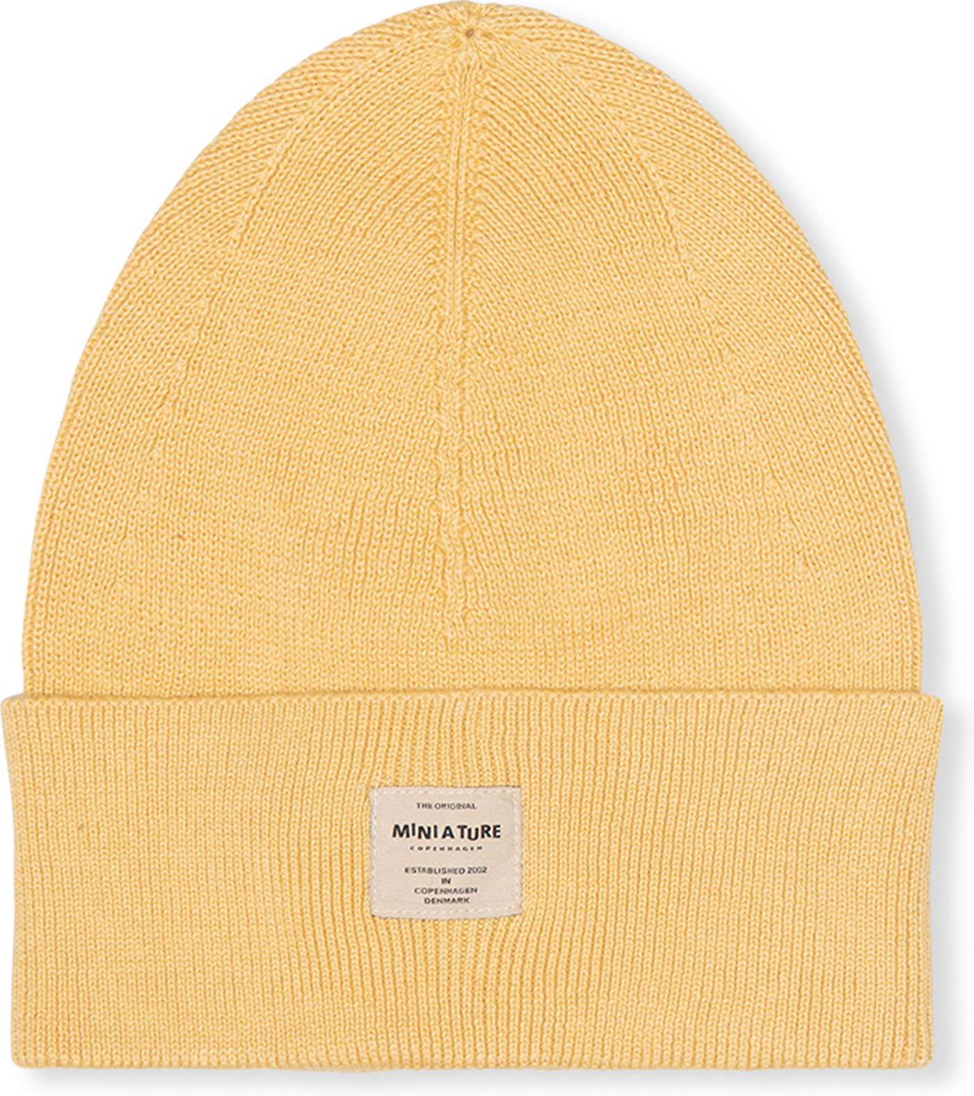 Coole Beanie in gerippter Optik aus Bio-Baumwolle von MINI A TURE für Kinder. Der Saum der Strick-Mütze ist umgekrempelt und auf der Vorderseite befindet sich ein MINI A TURE Logo-Patch.