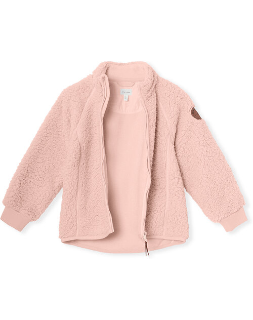 Die kuschelige Teddy-Plüsch Jacke mit Stehkragen von MINI A TURE ist ein tolles Kleidungsstück für Mädchen. Die zeitlose Optik und das weiche Material machen sie zu einem tollen Begleiter. Ob als Jacke von Frühling bis Herbst oder als zusätzliche Schicht unter der Winterjacke im Winter: die tolle Plüsch-Jacke ist universell tragbar. Von innen ist die Jacke glatt gearbeitet. Gerippte Baumwoll-Bündchen an den Ärmeln und ein Gummibündchen im Taillen-Saum sorgen für einen hohen Tragekomfort.