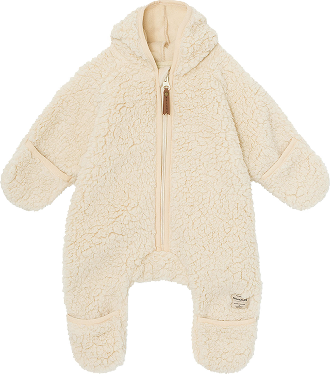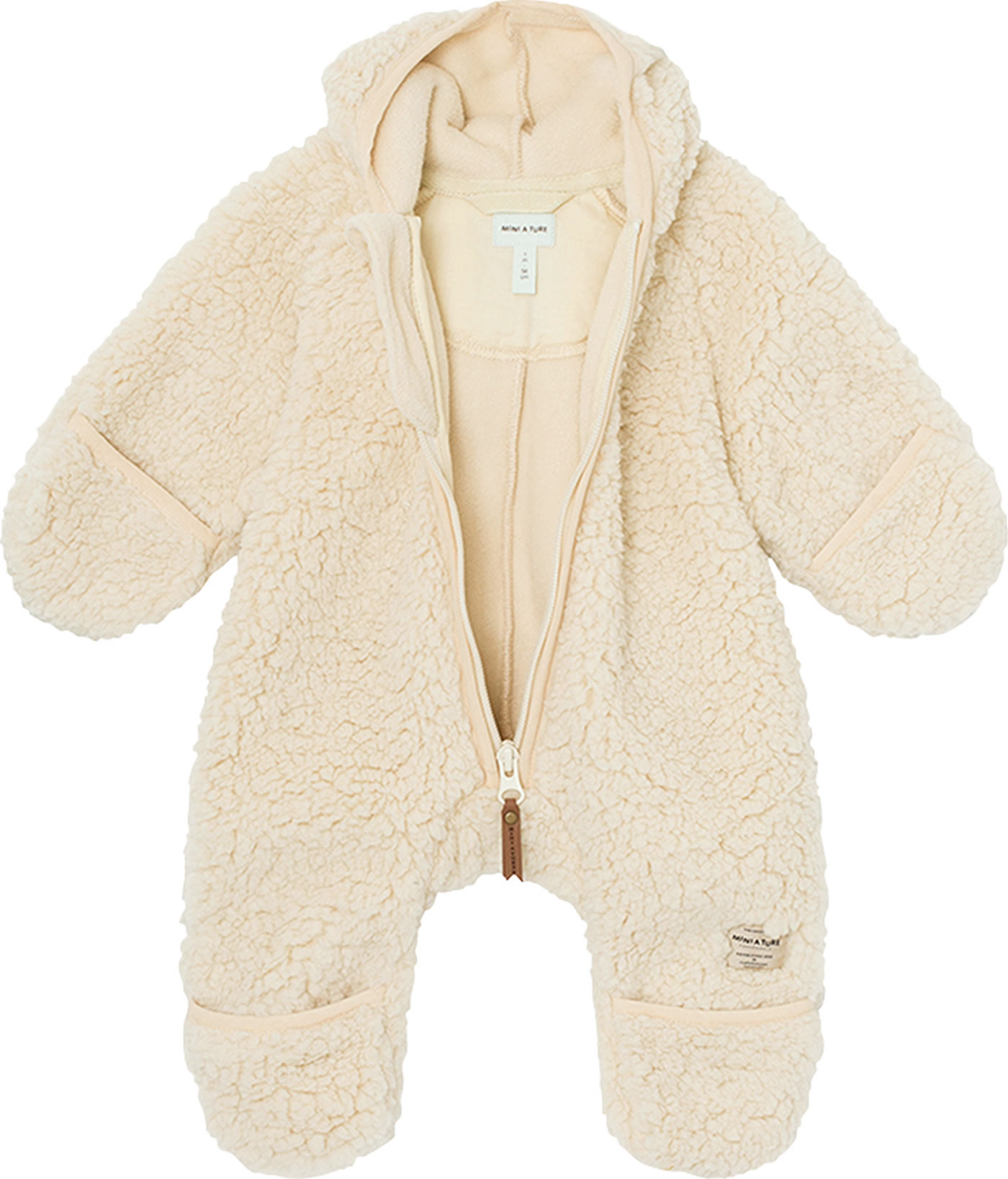 Der kuschelige Teddy-Plüsch Overall mit spitzer Kapuze und langem Reißverschluss von MINI A TURE ist ein tolles Kleidungsstück für die Kleinsten.