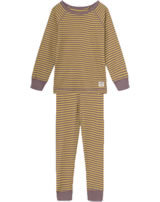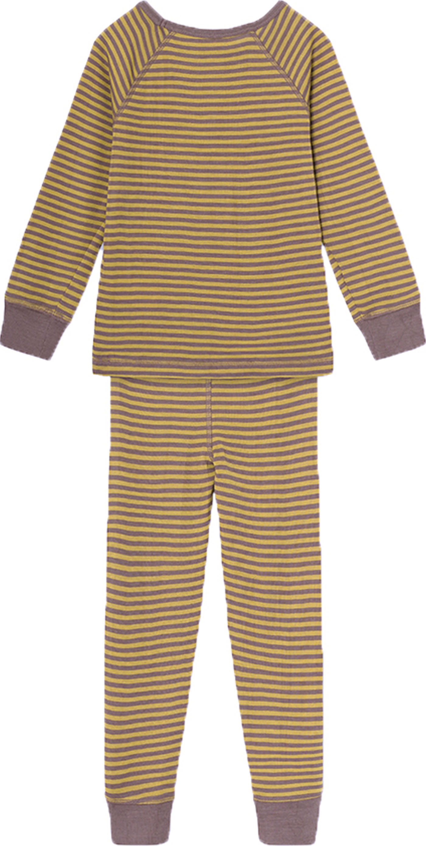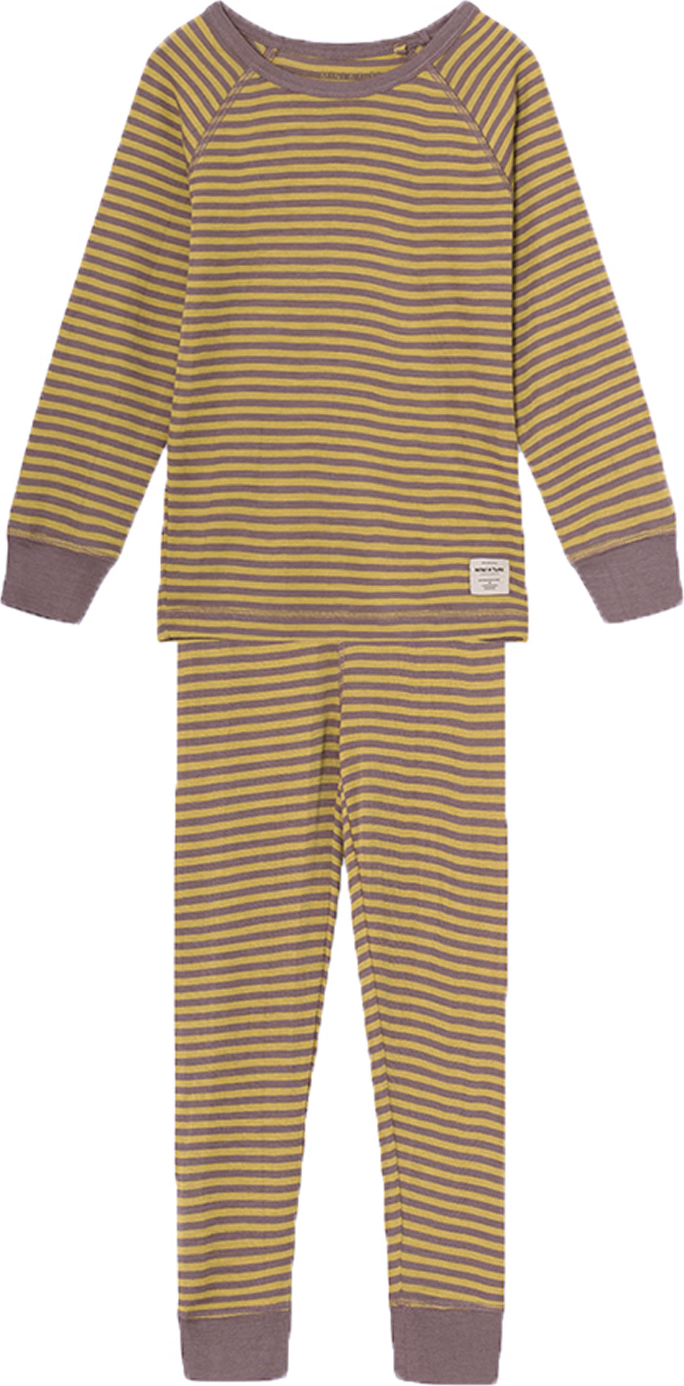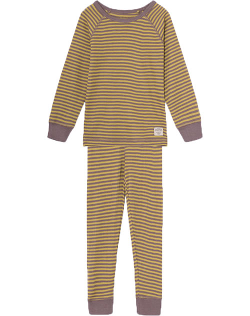 Das anschmiegsame Unterwäsche-Set BELA von MINI A TURE kommt im schönen Streifendesign und ist besonders weich auf der Kinderhaut. Durch den hohen Anteil von Merino-Wolle wärmt das tolle Set und sieht dazu auch noch peppig aus. Bündchen an der Hose und den Ärmeln sorgen für einen guten Sitz. Der Materialmix aus Wolle und Bambus hat temperaturregulierende Eigenschaften.