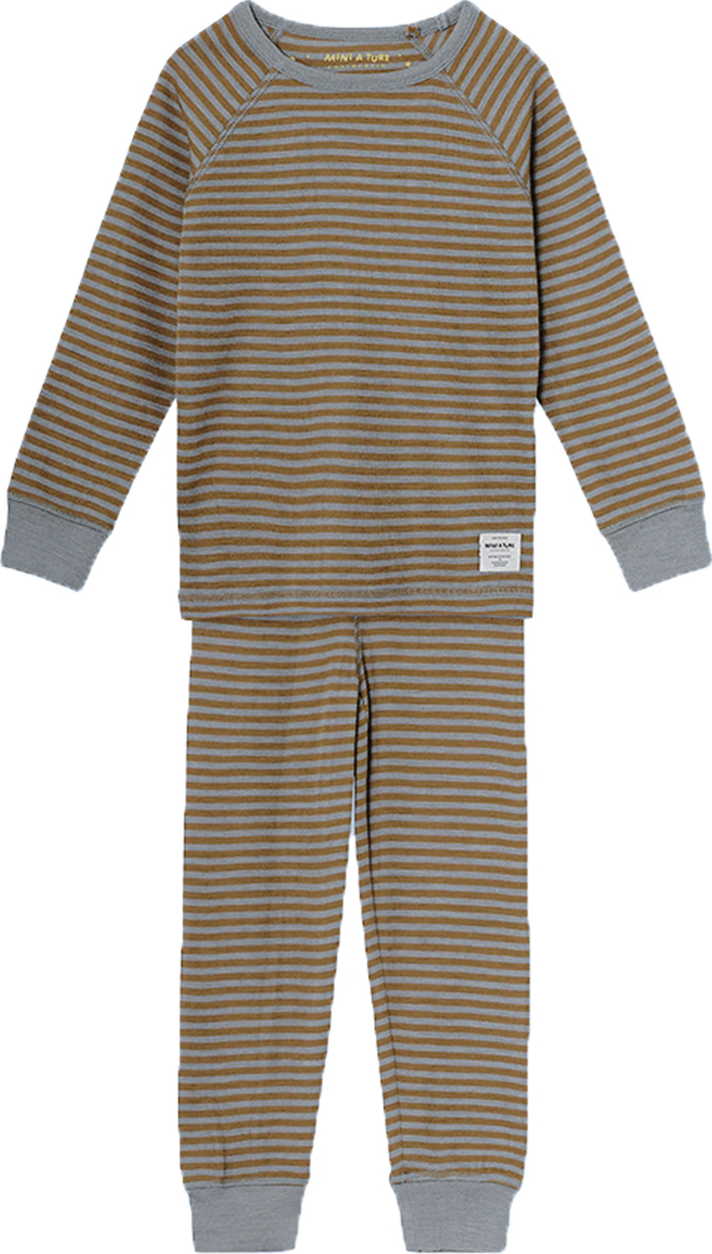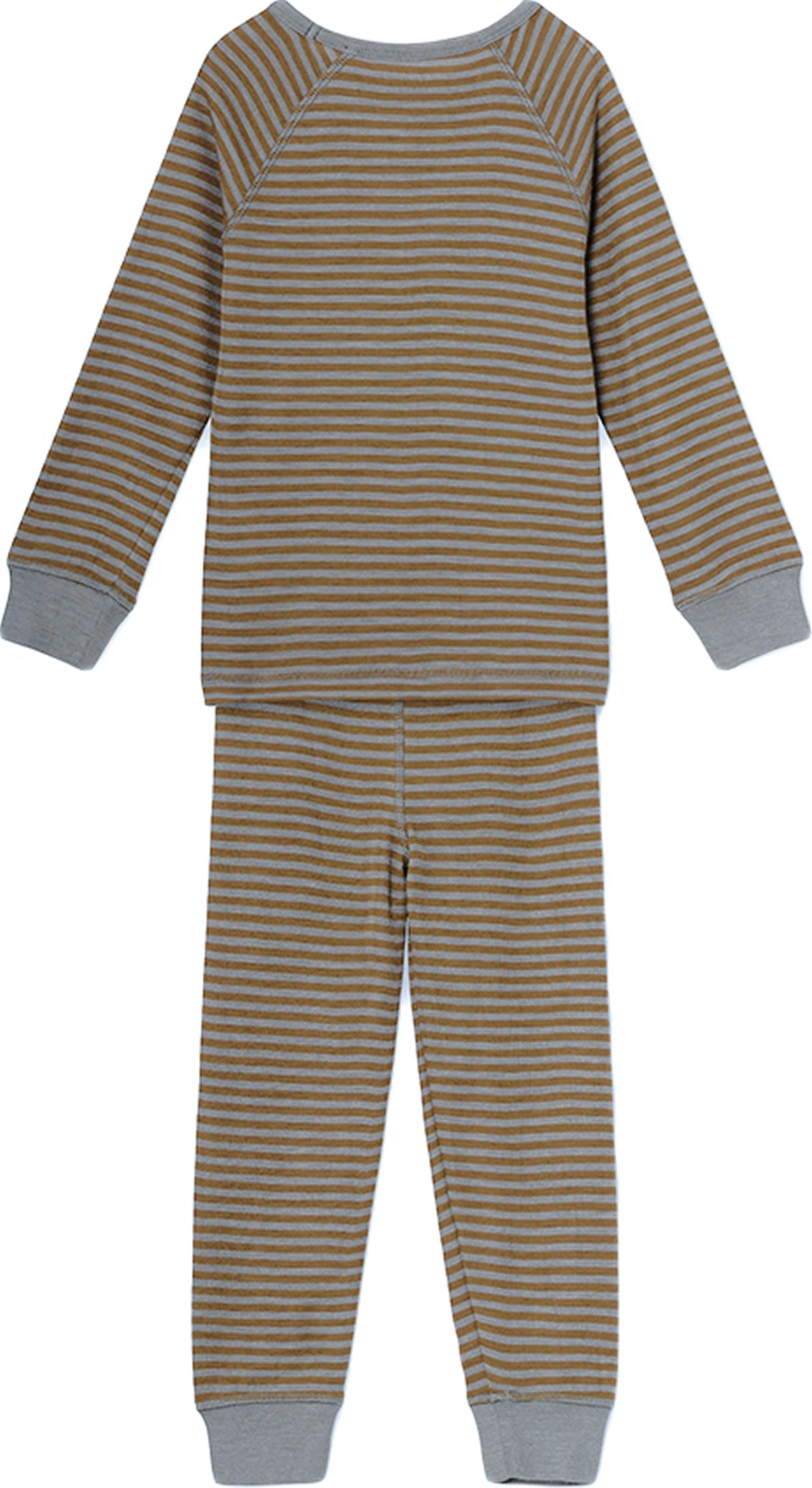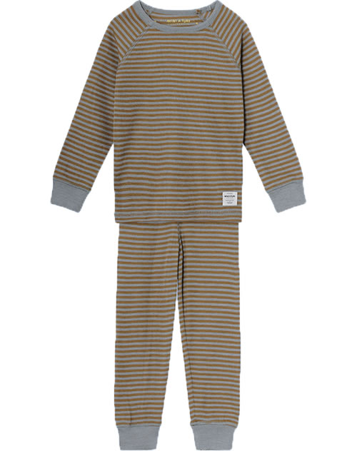 Das anschmiegsame Unterwäsche-Set BELA von MINI A TURE kommt im schönen Streifendesign und ist besonders weich auf der Kinderhaut. Durch den hohen Anteil von Merino-Wolle wärmt das tolle Set und sieht dazu auch noch peppig aus. Bündchen an der Hose und den Ärmeln sorgen für einen guten Sitz. Der Materialmix aus Wolle und Bambus hat temperaturregulierende Eigenschaften.