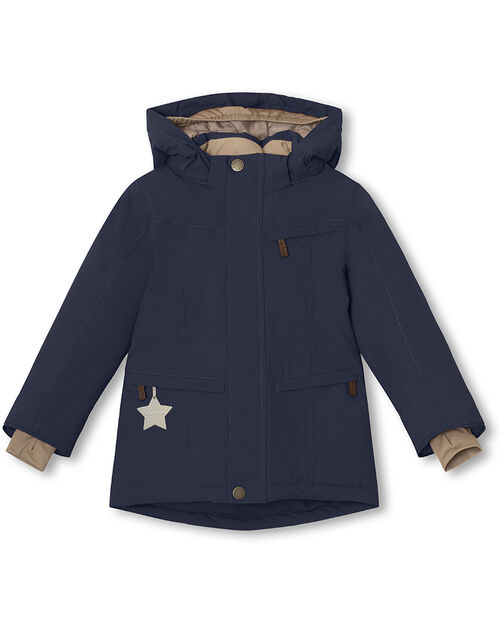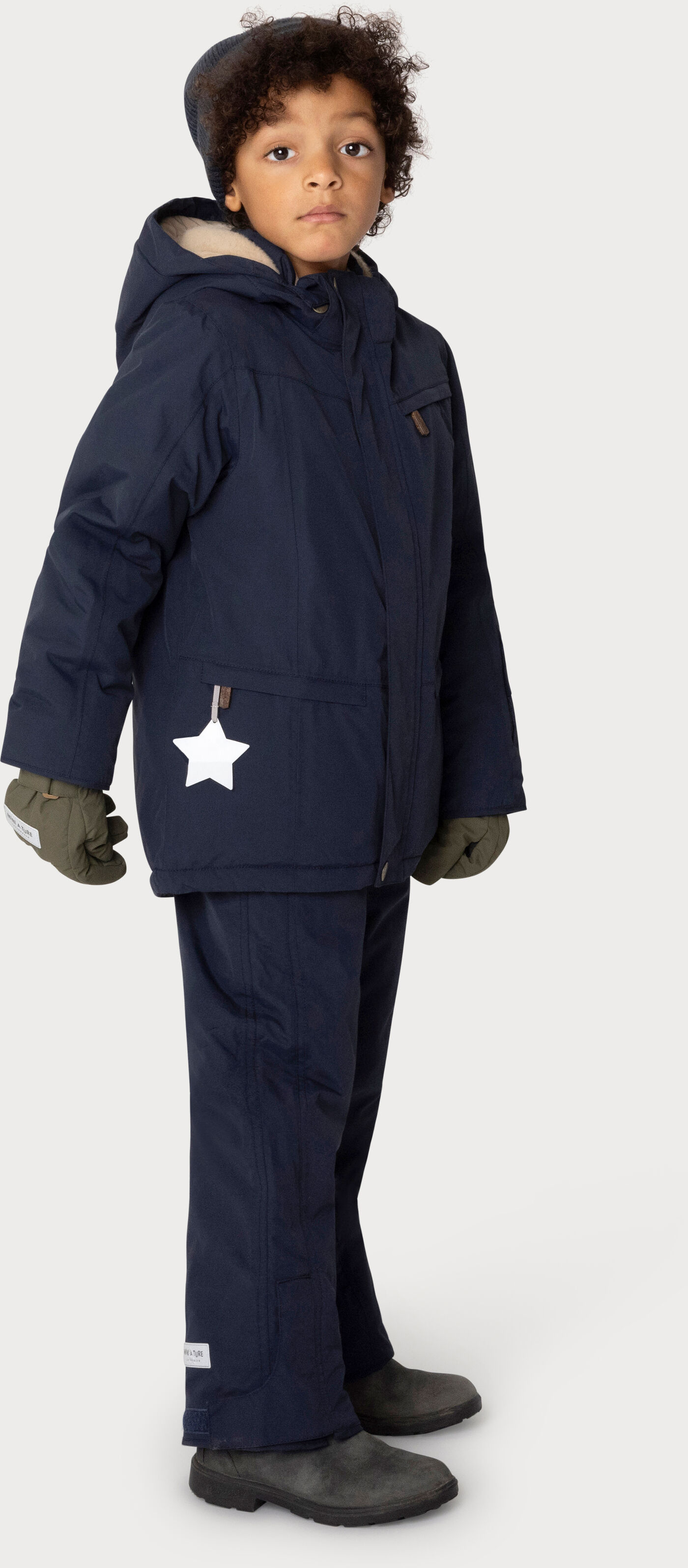 Rundum geschützt sind Jungen und Mädchen mit der gefütterten Winter-Jacke MATVESTYN von MINI A TURE. Die atmungsaktive Winterjacke ist wind- und wasserdicht verarbeitet und bietet mit praktischen Details, wie der abknöpfbaren Kapuze oder den weichen Bündchen an den Ärmelenden einen optimalen Schutz vor Kälte und Nässe. Ausgestatt mit Thermolite® ist die Kinderjacke besonders leicht und hält gleichzeitig schön warm. Reflektierende Details sorgen für eine gute Sichtbarkeit in der dunklen Jahreszeit. In den Taschen, die sich mit einem Reißverschluss schließen lassen, sind Kleinigkeiten gut aufbewahrt.