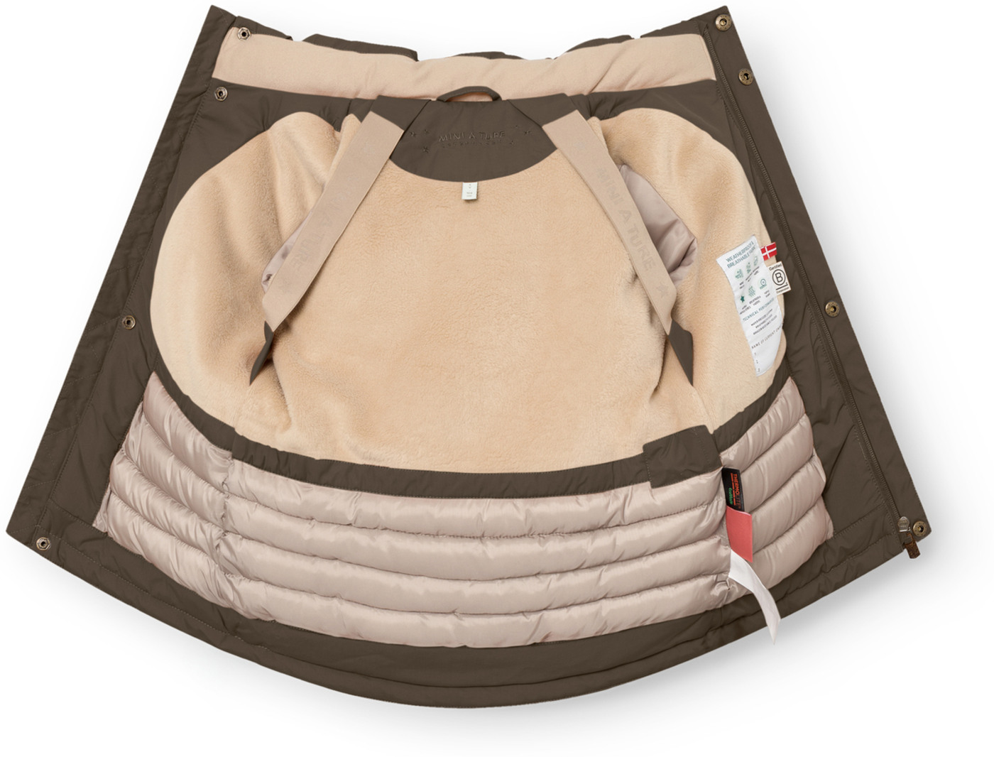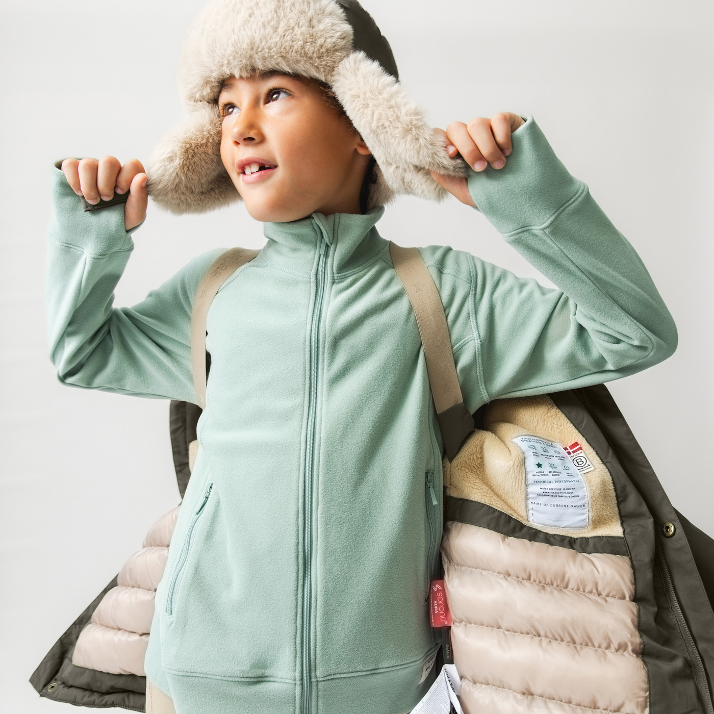 kuscheliges Fleecefutter für wohlige Wärme, während im unteren Teil SORONA® Aura verarbeitet ist- eine nachhaltige, tierfreundliche Alternative zu Daunen.