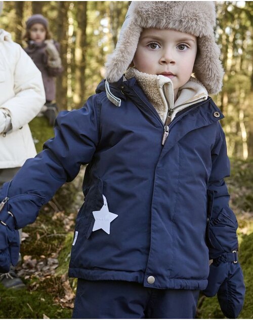 Besonders durchdacht sind die weichen Schneemanschetten mit Daumenöffnung, die kleine Hände auch beim Schneemannbauen warm halten.