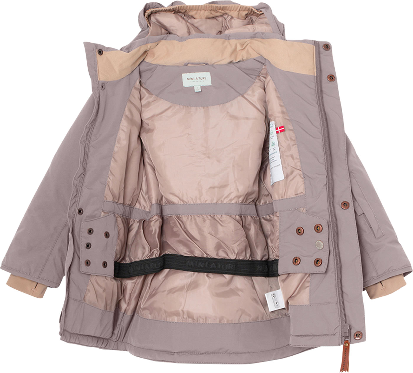 Die coole Mädchenjacke VELAJANNA von MINI A TURE aus strapazierfähigem Material ist ein idealer Begleiter für die kalte Jahreszeit. Sie ist wind- und wasserdicht und hat außerdem reflektierende Details, die für eine gute Sichtbarkeit in der dunklen Jahreszeit sorgen. Das Gummiband in der Taille verleiht der Jacke eine schmeichelhafte Form. Die abnehmbare Kapuze ist mit Druckknöpfen befestigt und lässt sich leicht ab- und wieder anknöpfen. Die praktischen und warmen Bündchen an den Ärmeln bieten Platz für die Daumen. Der bekannte Sternreflektor von MINI A TURE ist an einer der Vordertaschen angebracht und zwei weitere Reflektoren an der Seite und auf der Rückseite.