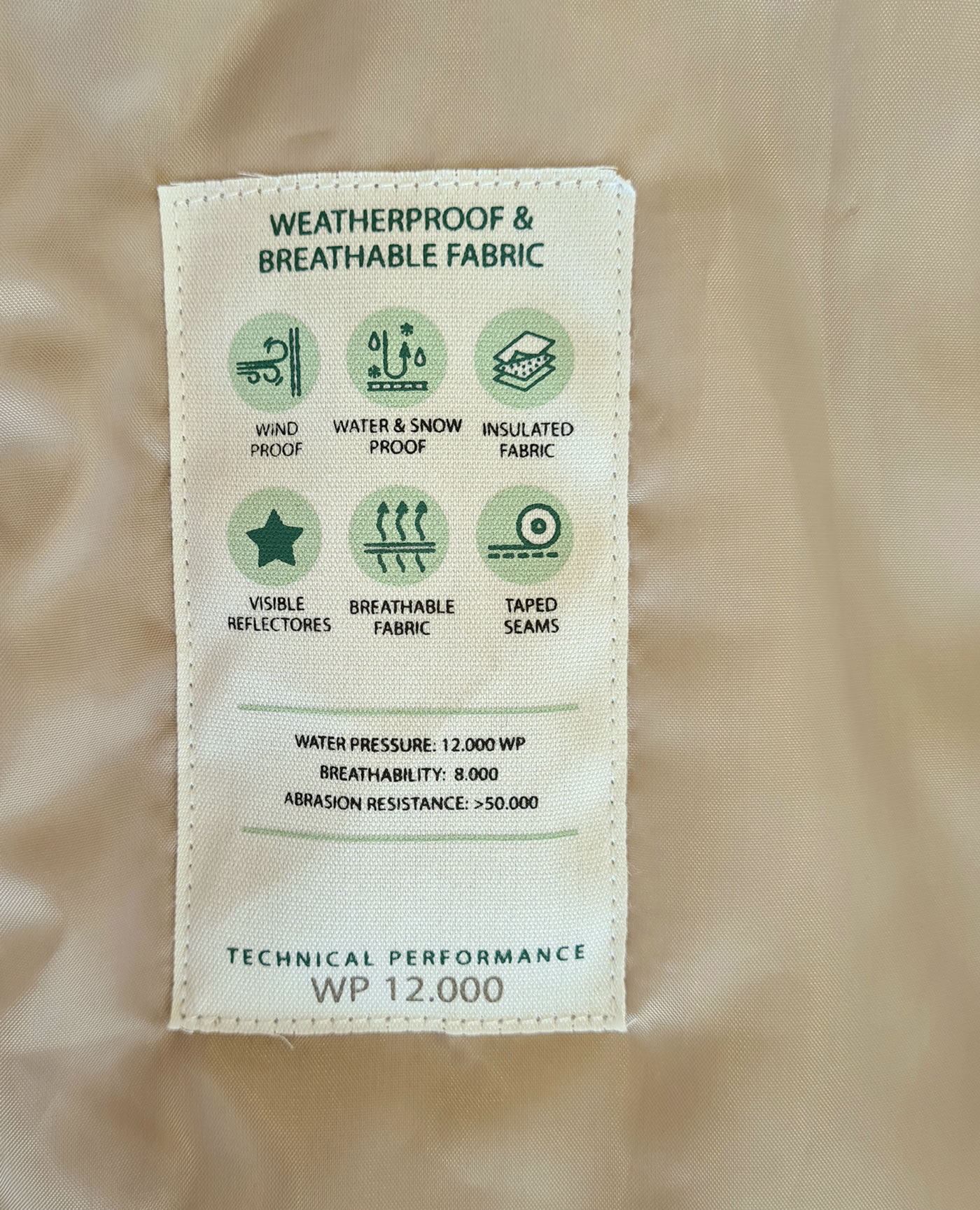Material: Obermaterial: 100 % recyceltes Nylon; Innenmaterial: 100 % recyceltes Polyester; Füllung: 35 % recyceltes Polyester, 65 Polyester (Thermolite®)