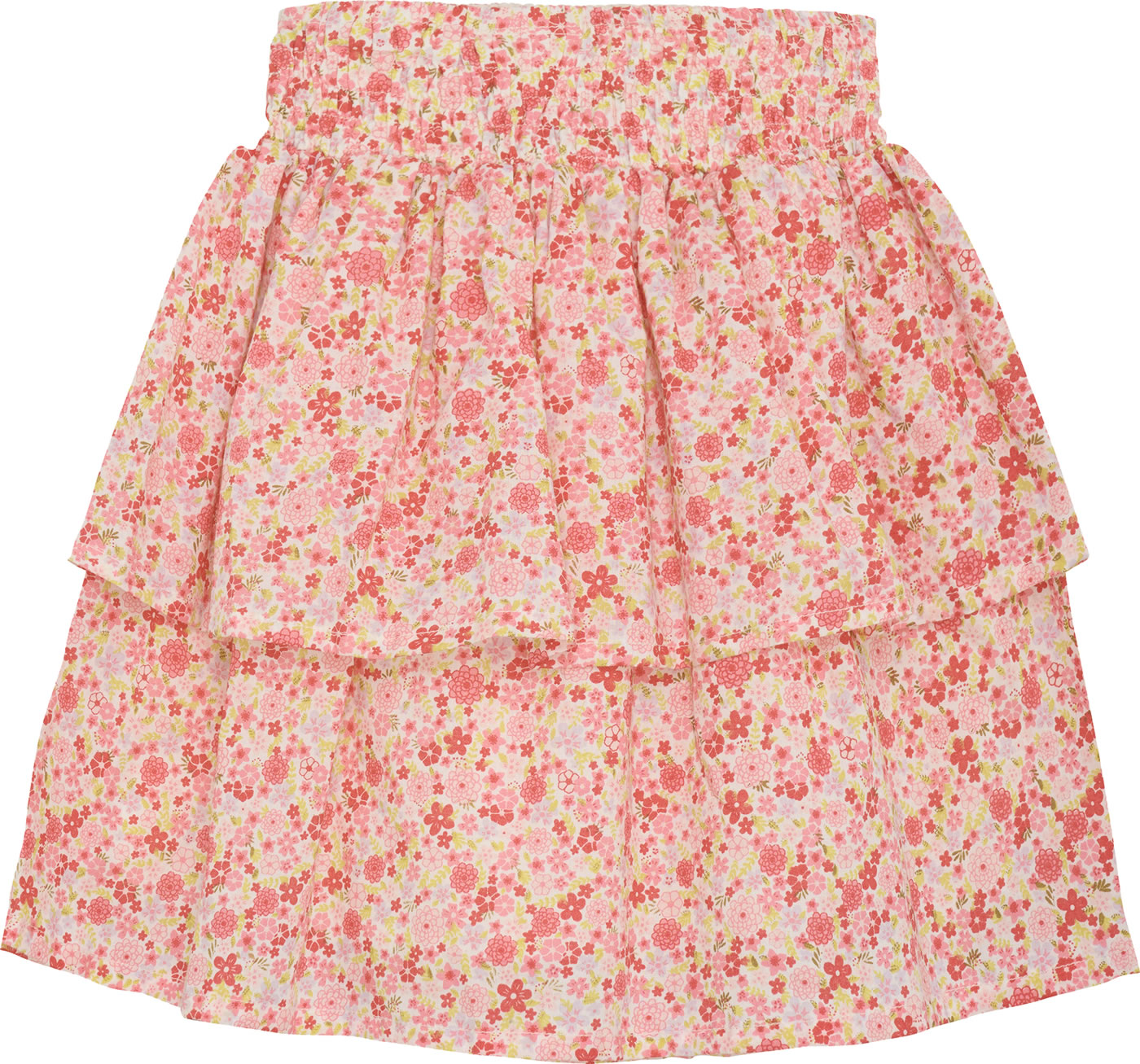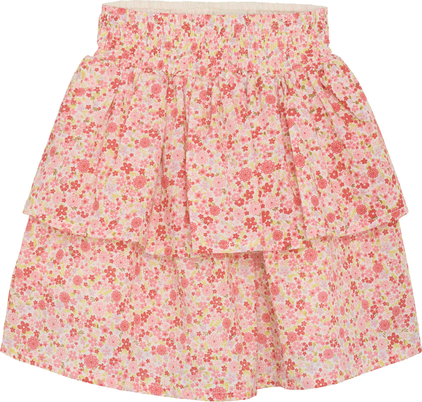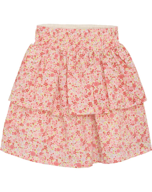 Weit schwingender Rock von MINYMO für Mädchen. Der Rock besteht aus zwei Lagen geblümten Baumwollstoff und einem einfarbigen Futter für mehr Blickdichte. Der breite elastische Bund sorgt für einen perfekten Sitz. Ein besonders schönes Details ist das farbenrohe Blumenmuster..