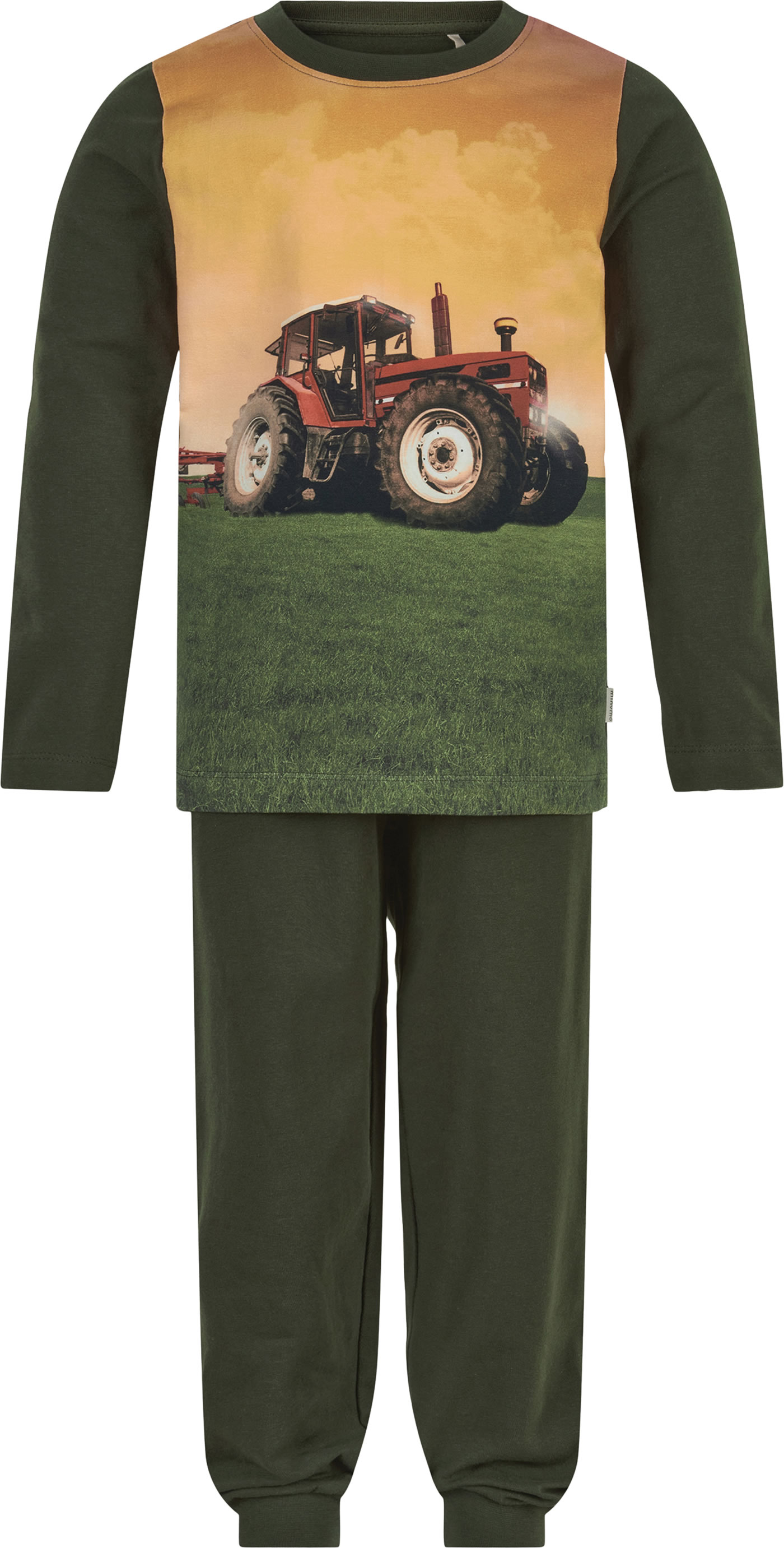 Mit diesem schönen Schlafanzug von MINYMO läßt es sich gut träumen. Das Oberteil ist grün und hat einen roten Traktor Druck. Die Hose mit einen breiten, weichen Gummibund – so kann nichts zwicken.