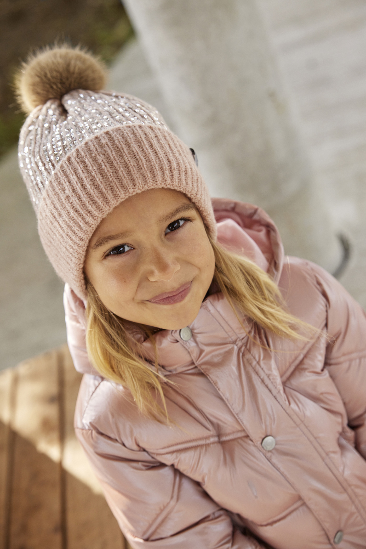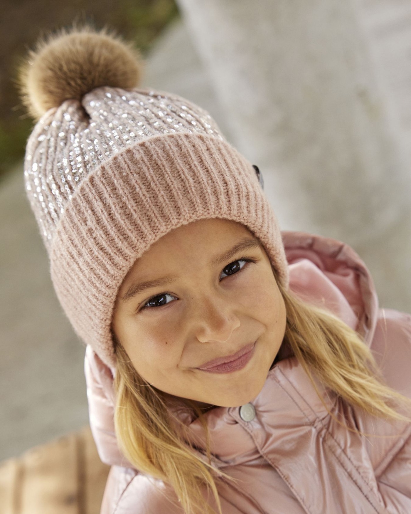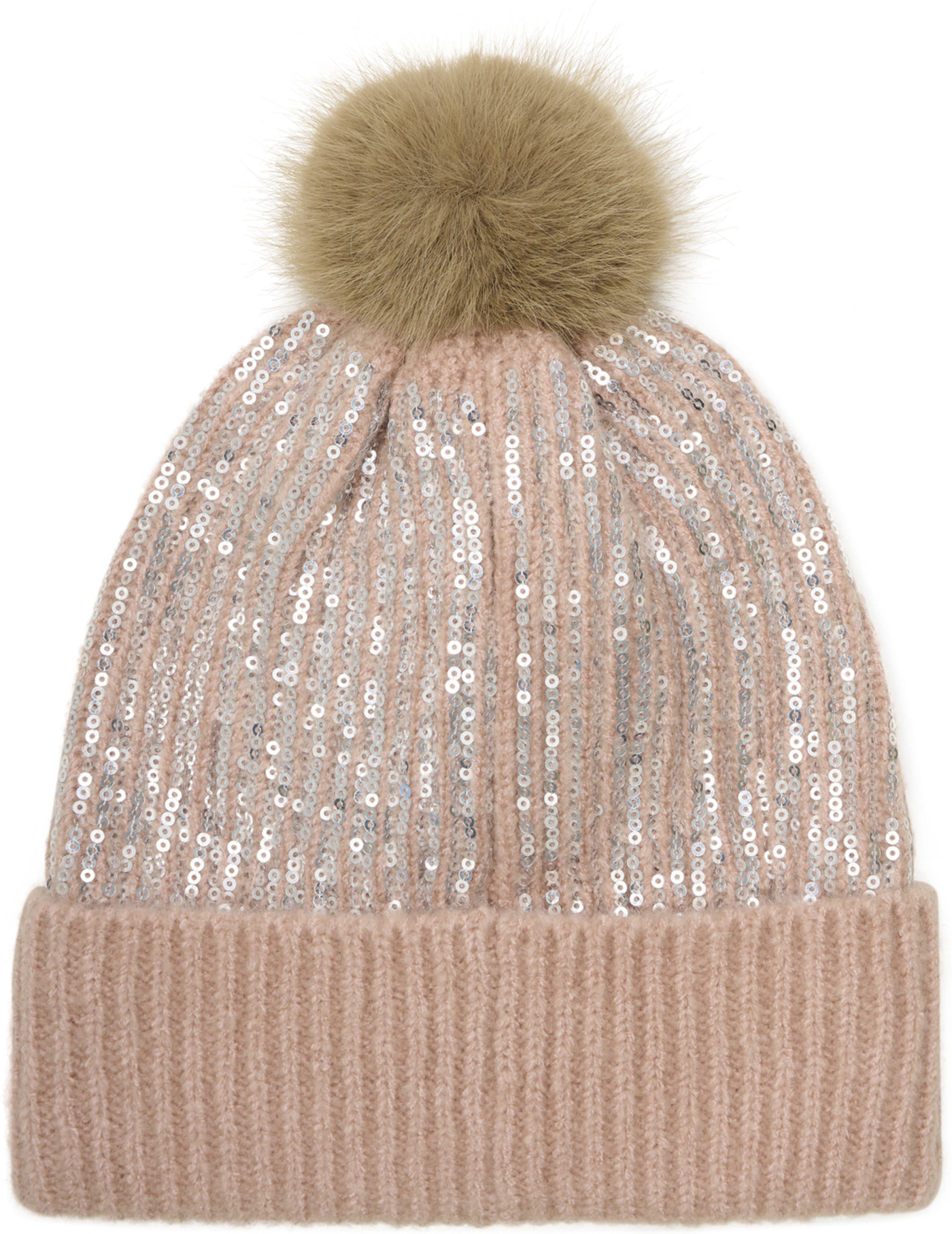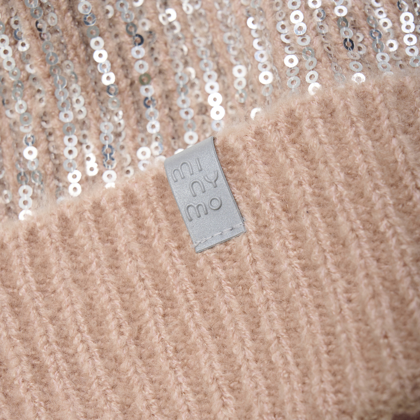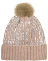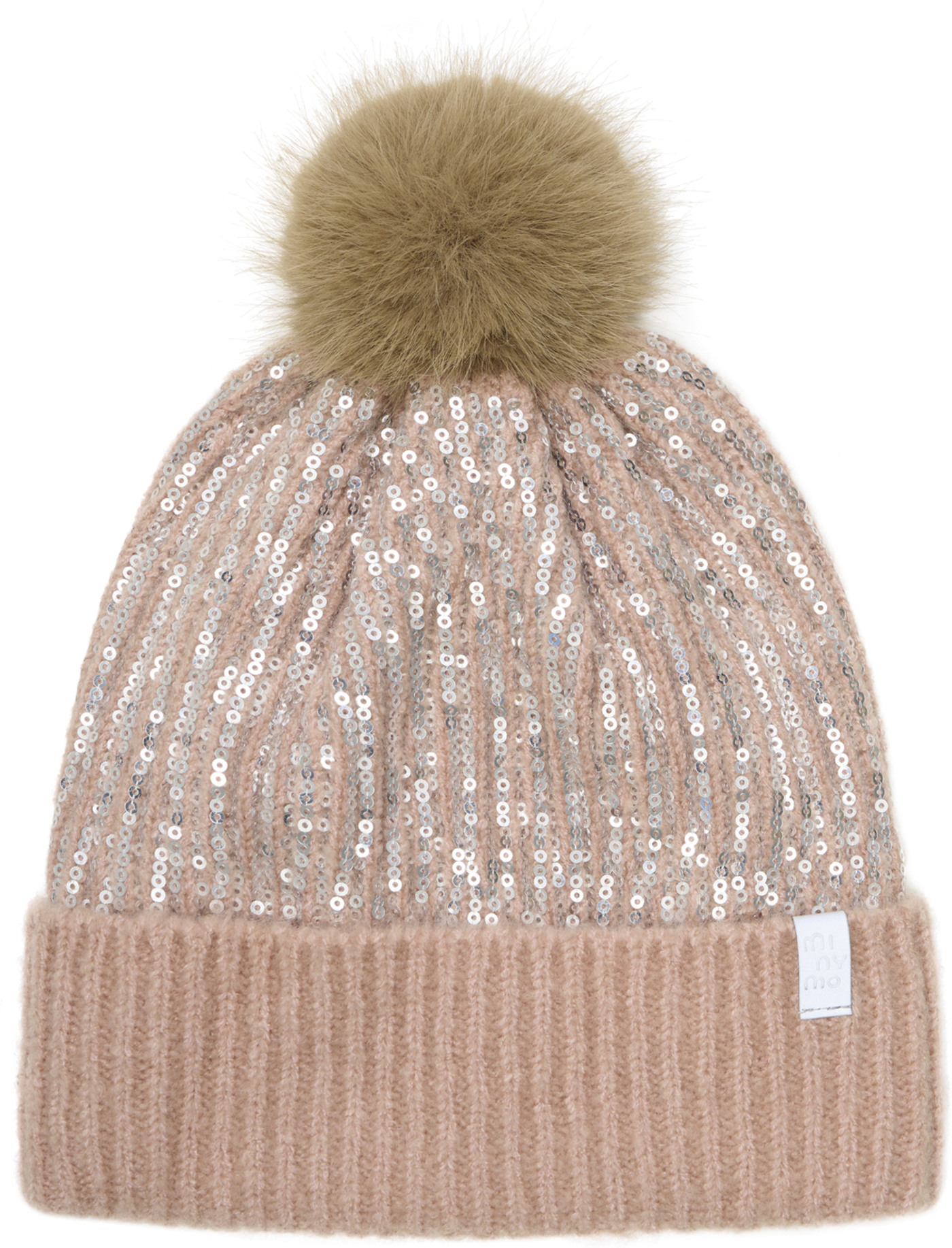 Minymo Strickmütze mit Bommel und Pailetten - Misty Rose