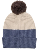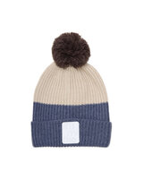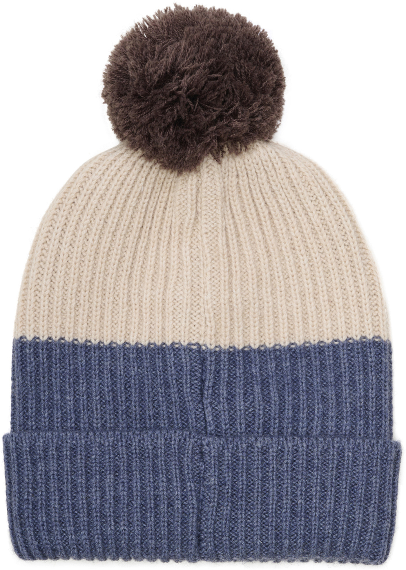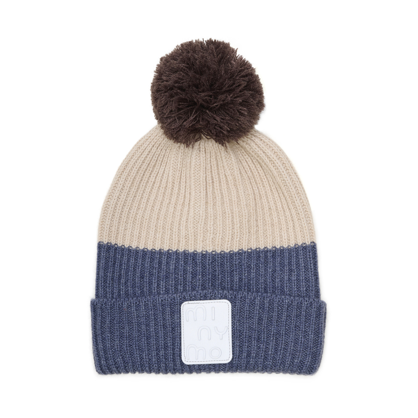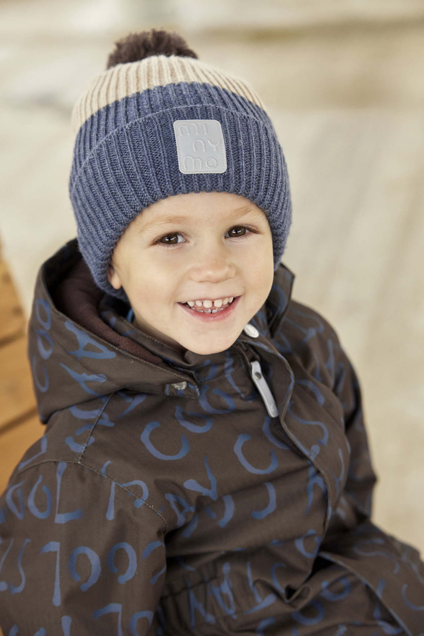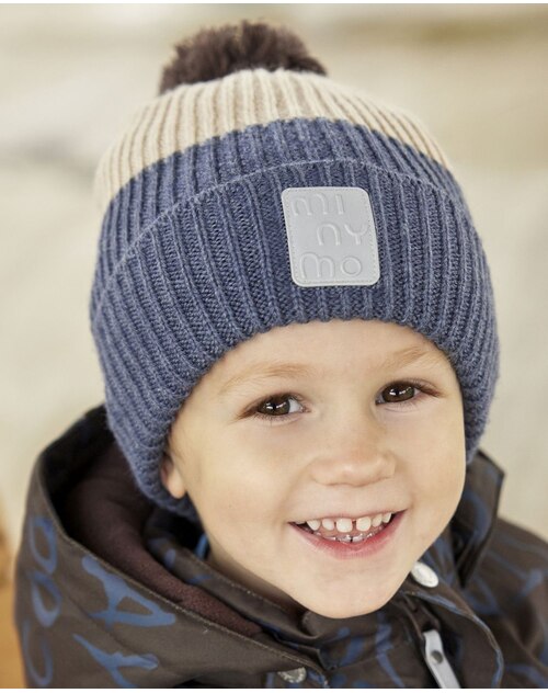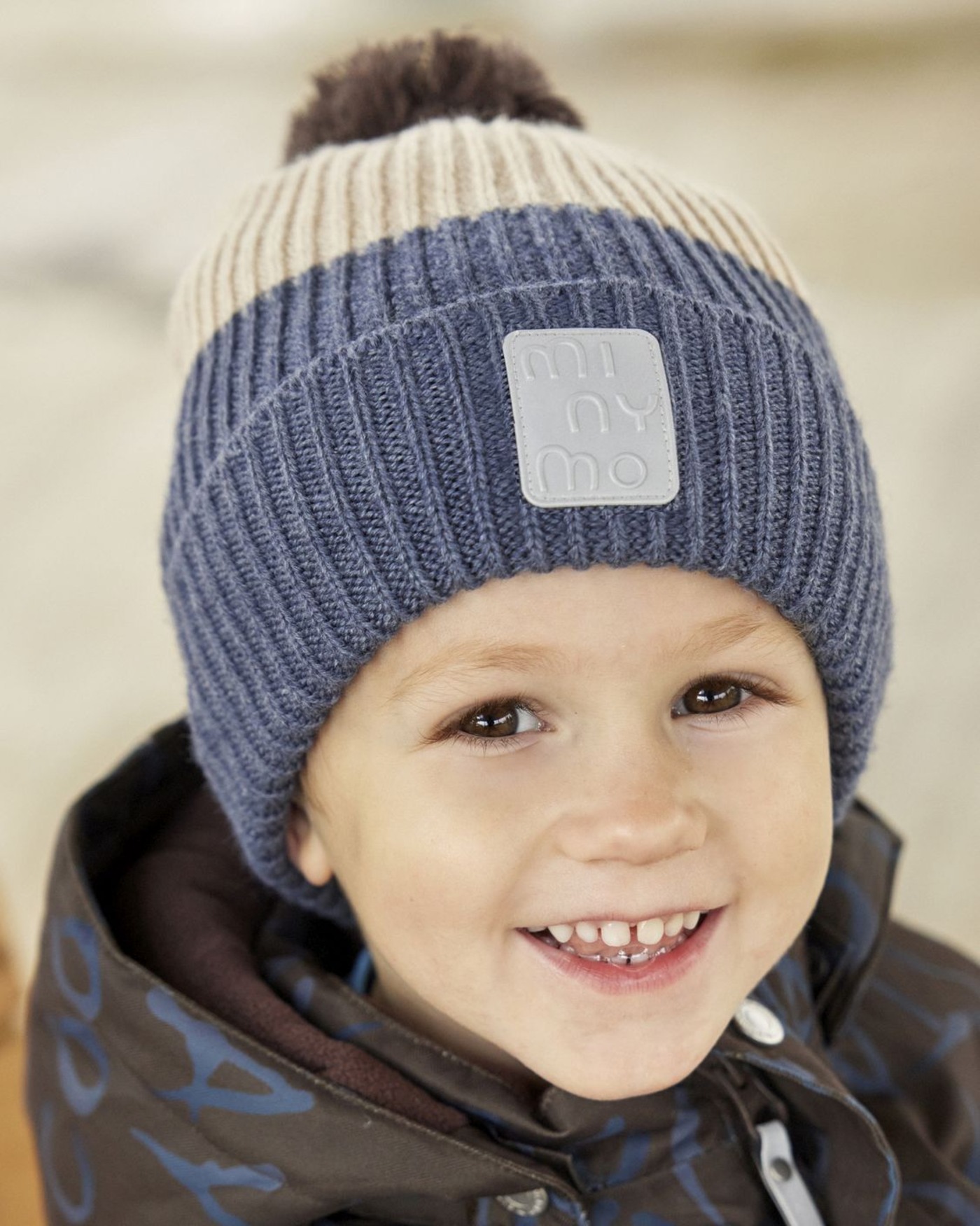 Diese schöne zweifarbige Strickmütze mit Bommel von Minymo ist angenehm weich und hält Kopf und Ohren schön warm. 🙂