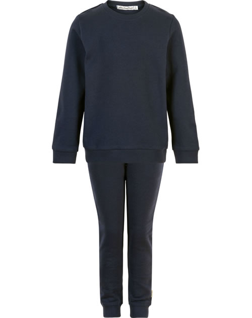 Bequemes Sweat-Set mit Pullover und Jogginghose in der Farbe dark navy von MINYMO für Jungen und Mädchen.