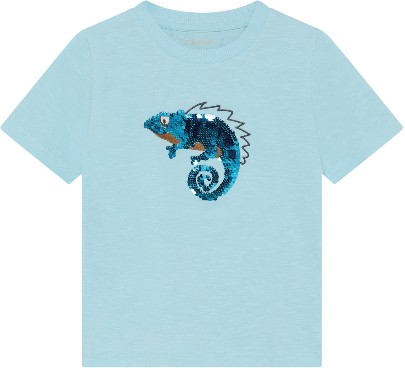 Minymo T-Shirt aus Baumwolle mit Camelion aus Pailletten - Aqua-Esque