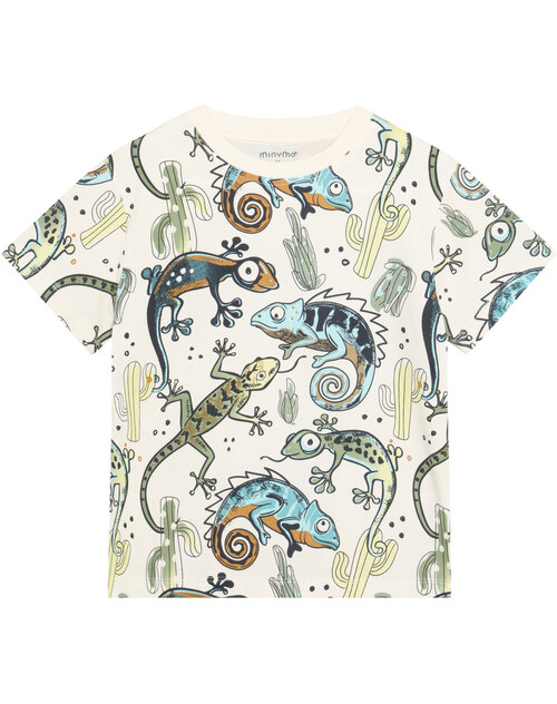 Minymo T-Shirt aus Baumwolle mit Gekkos und Kakteen - Vanilla Ice