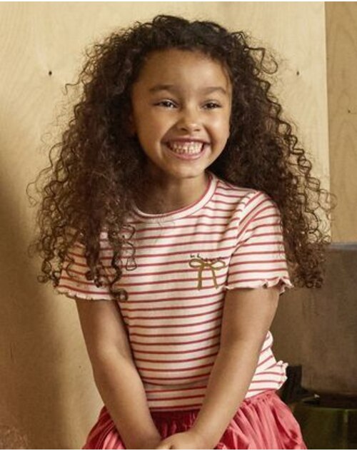 Minymo T-Shirt aus Bio-Baumwolle mit Schleifen-Print - Spiced Coral 🎀