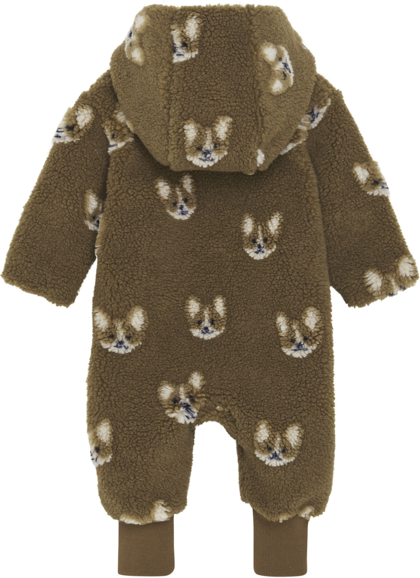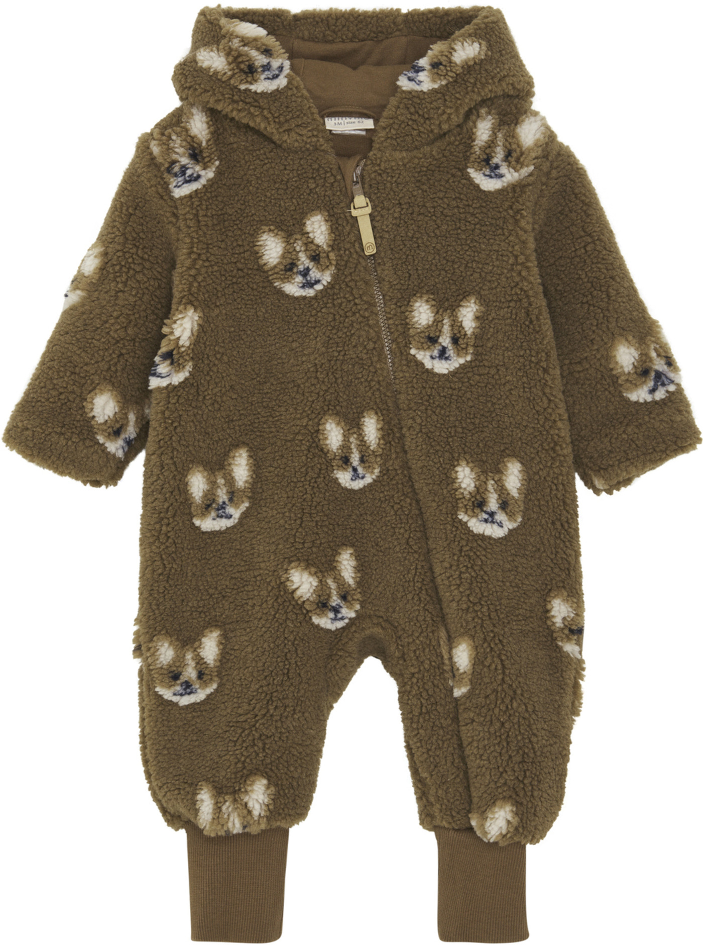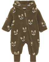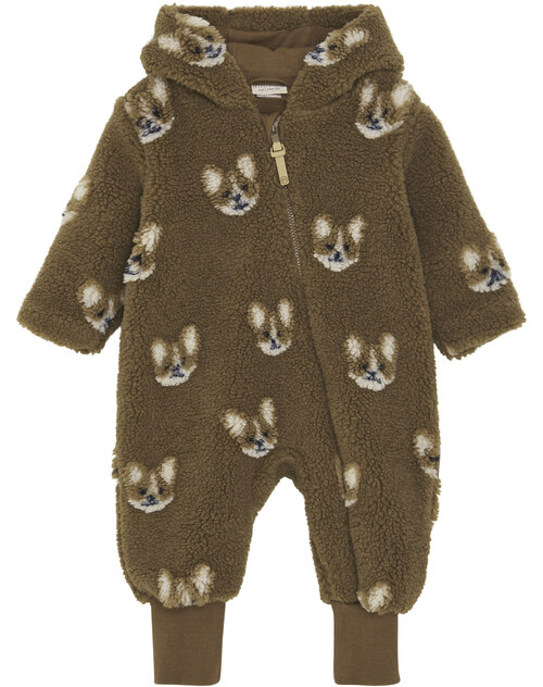 Süßer Teddyanzug mit Aufdruck von Minymo. Der Anzug hat einen schönen Teddy-Look. Er hat eine Kapuze und wird mit einem Reißverschluss mit Kinnschutz geschlossen.