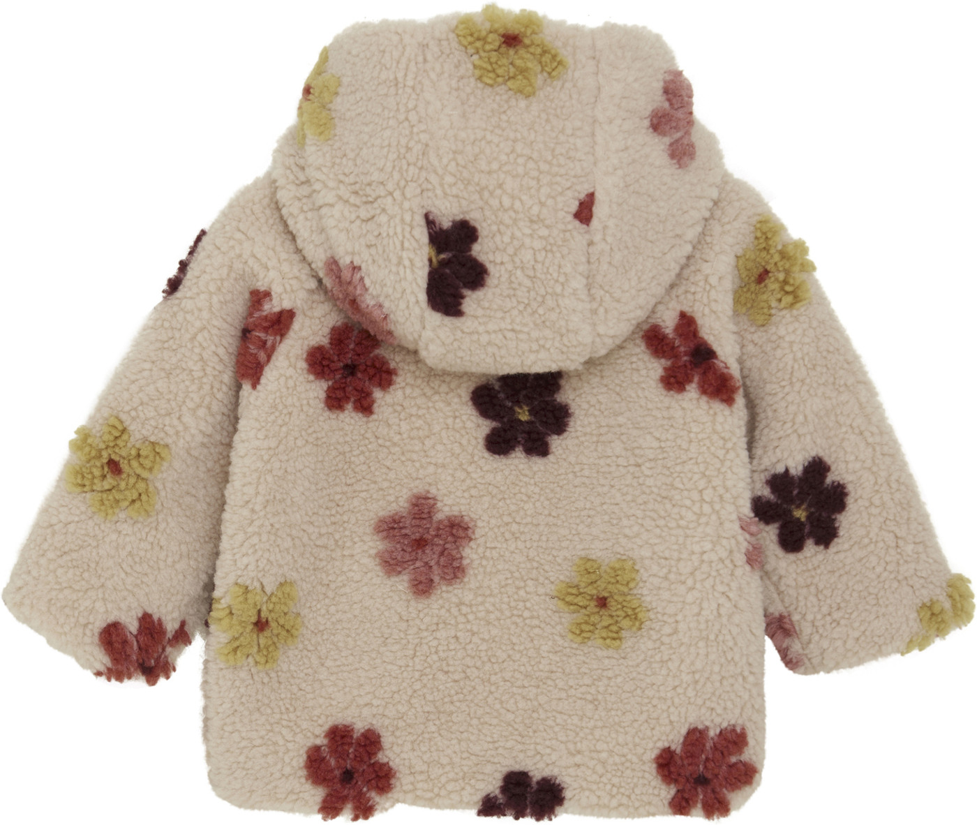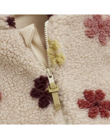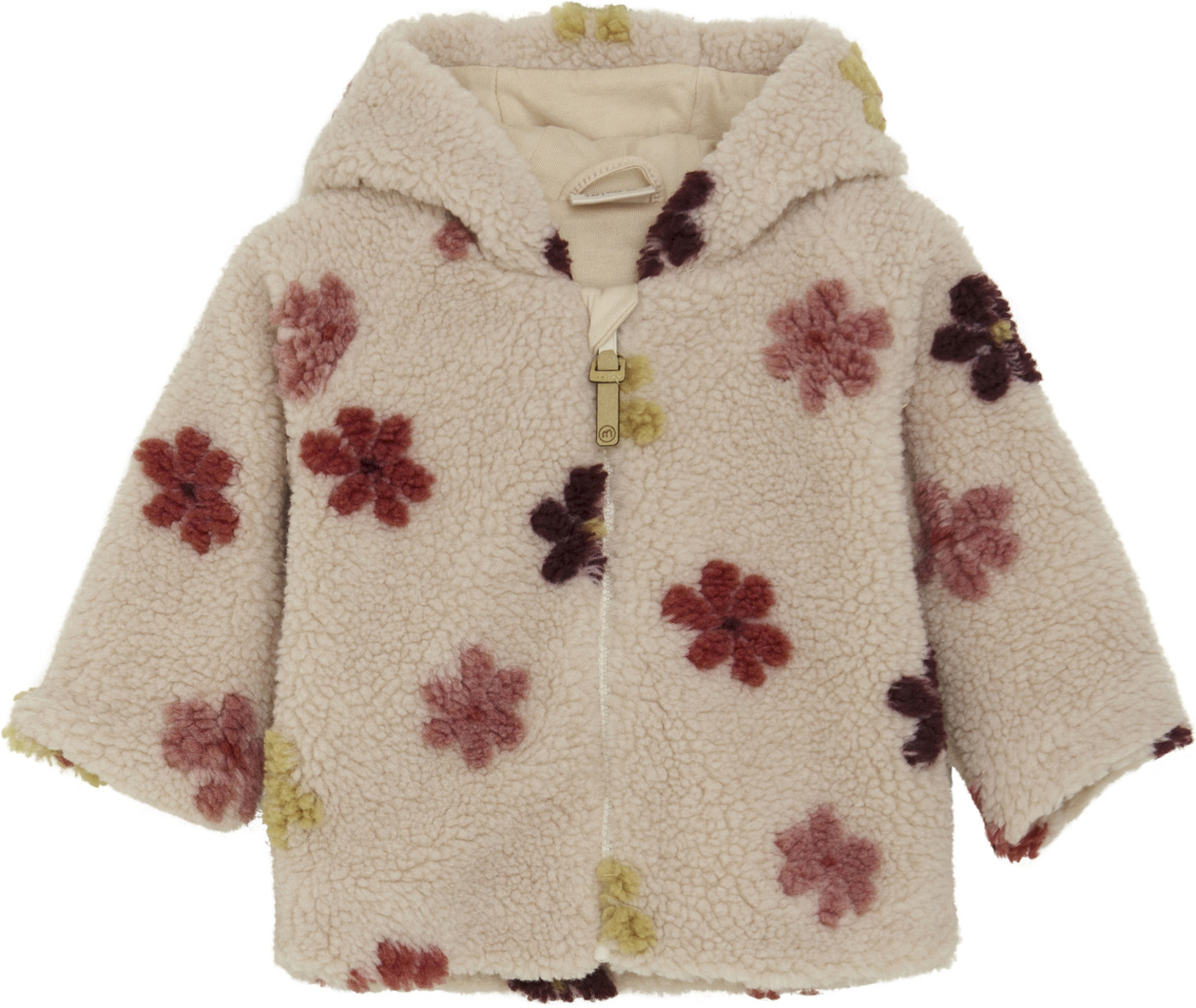 Süße Teddyjacke mit Aufdruck von Minymo. Der Anzug hat einen schönen Teddy-Look. Sie hat eine Kapuze und wird mit einem Reißverschluss mit Kinnschutz geschlossen.