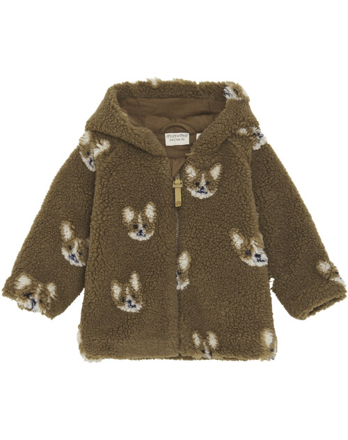 Minymo Teddy-Jacke mit Aufdruck - Sepia