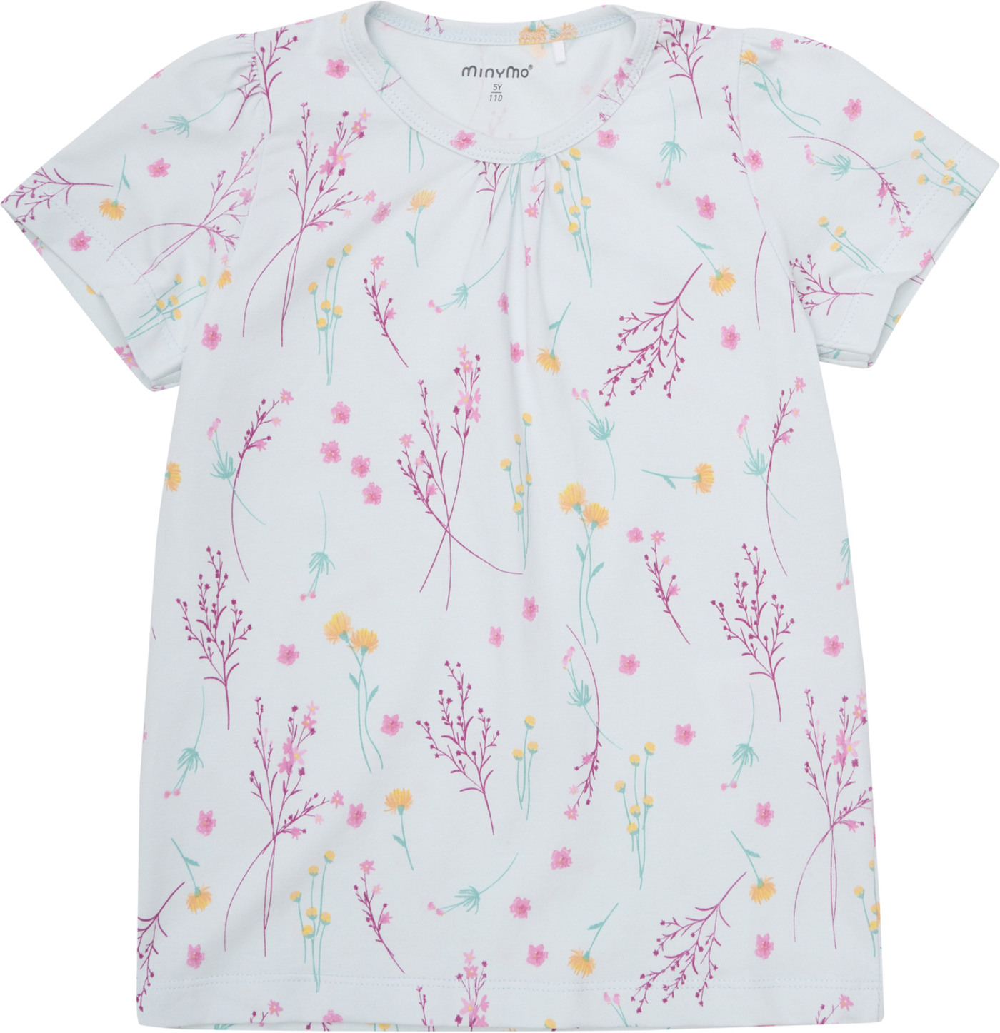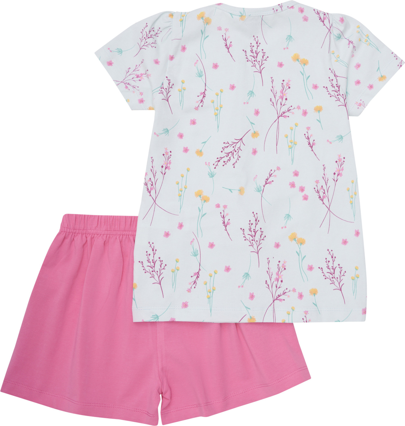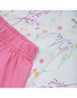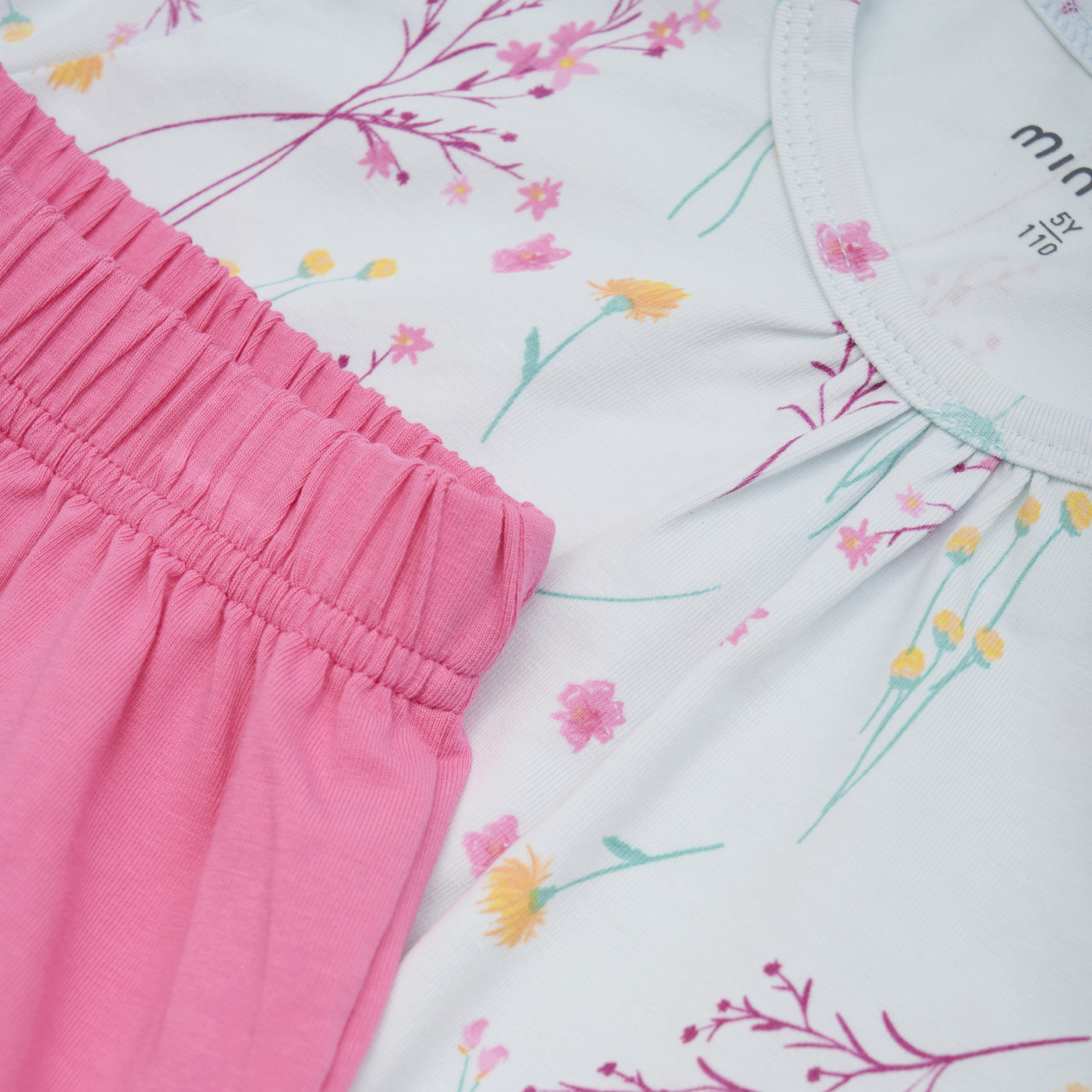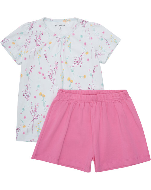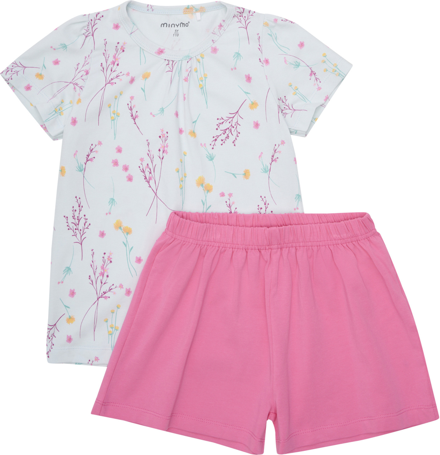 Das schöne Set von Minymo besteht aus einem T-Shirt mit hübschen Stofffalten am Kragen und einer Shorts.