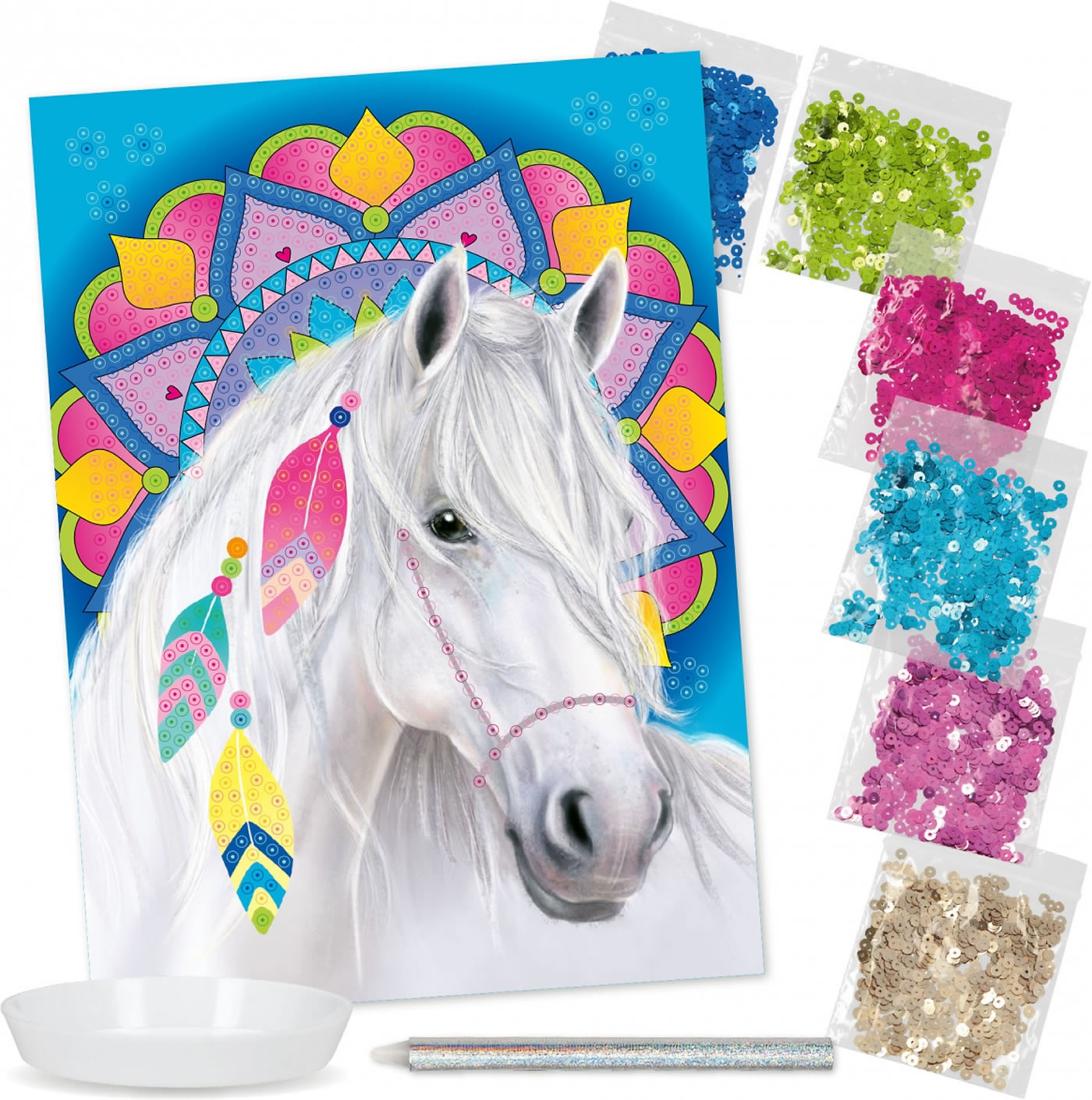 Fantastisch funkelnd schön: Mit "Create your Diamond" von Miss Melody kann man ganz einfach ein unglaubliches Bild kreieren. Mit 6 verschiedenen Pailletten, die mit Hilfe des dazugehörigen "Sticks" auf die Bildvorlage gebracht werden. Plus: Schüsselchen zum Sortieren der Pailletten.
