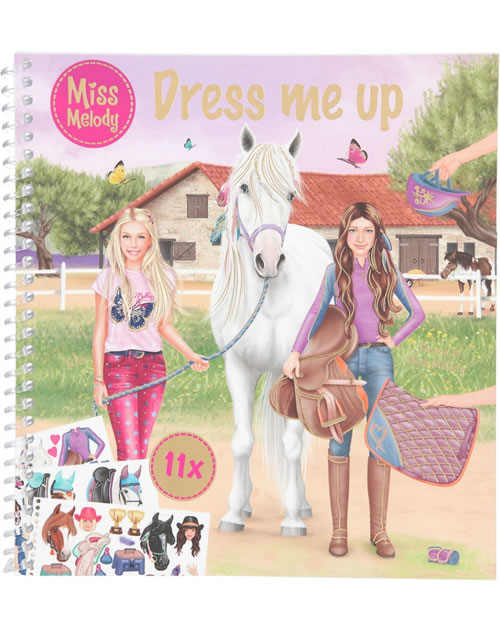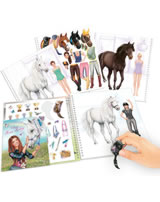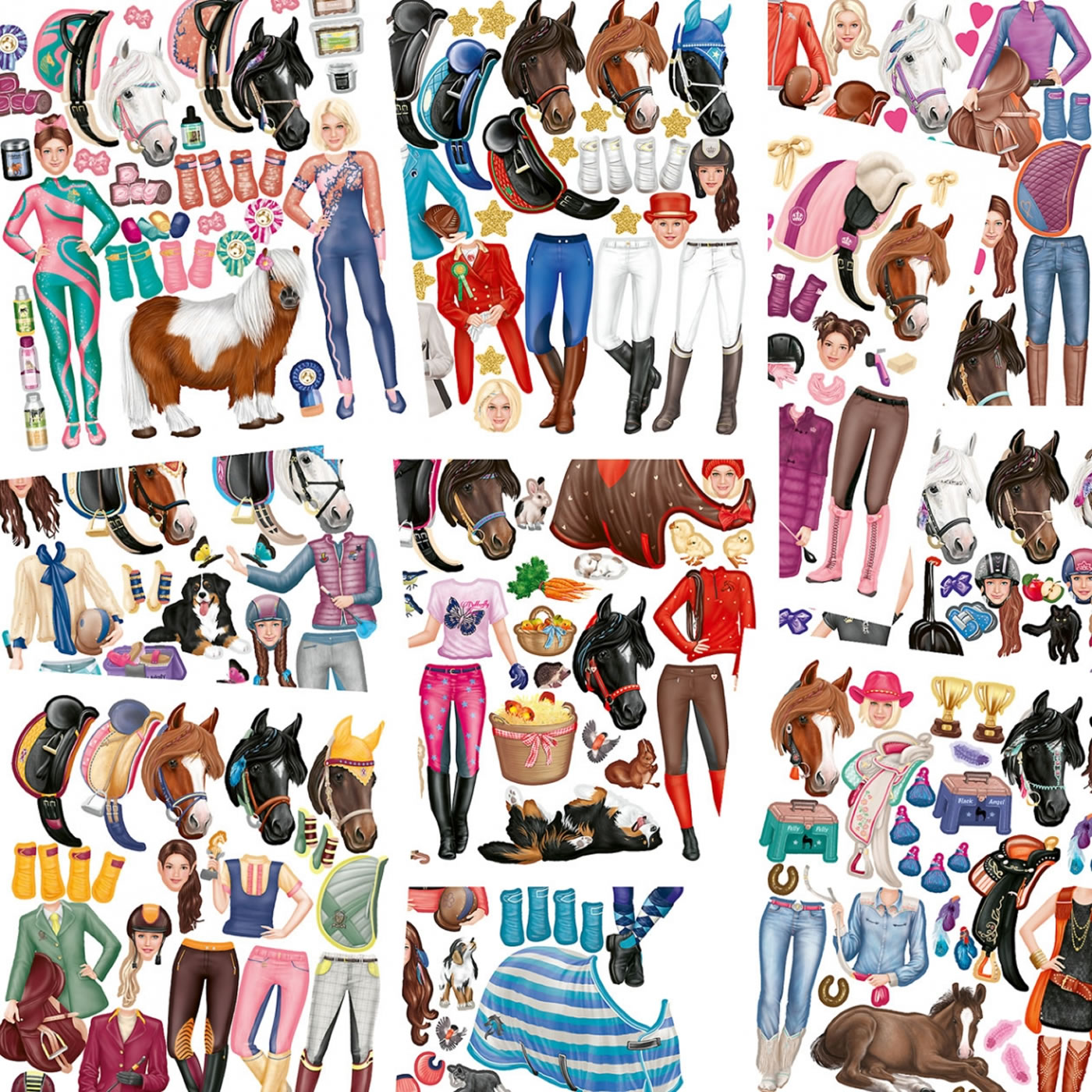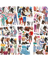 Auf 24 Seiten kannst du tolle Outfits für den Ausritt oder das Reitturnier entwerfen. Auf den 11 Stickerbögen findest du Accessoires für die Pferde und ihre Reiterinnen.